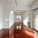 マンションはまだまだ築浅のデザイナーズ物件。白いタイル張りの明るいエントランスを抜けてお部屋へ。