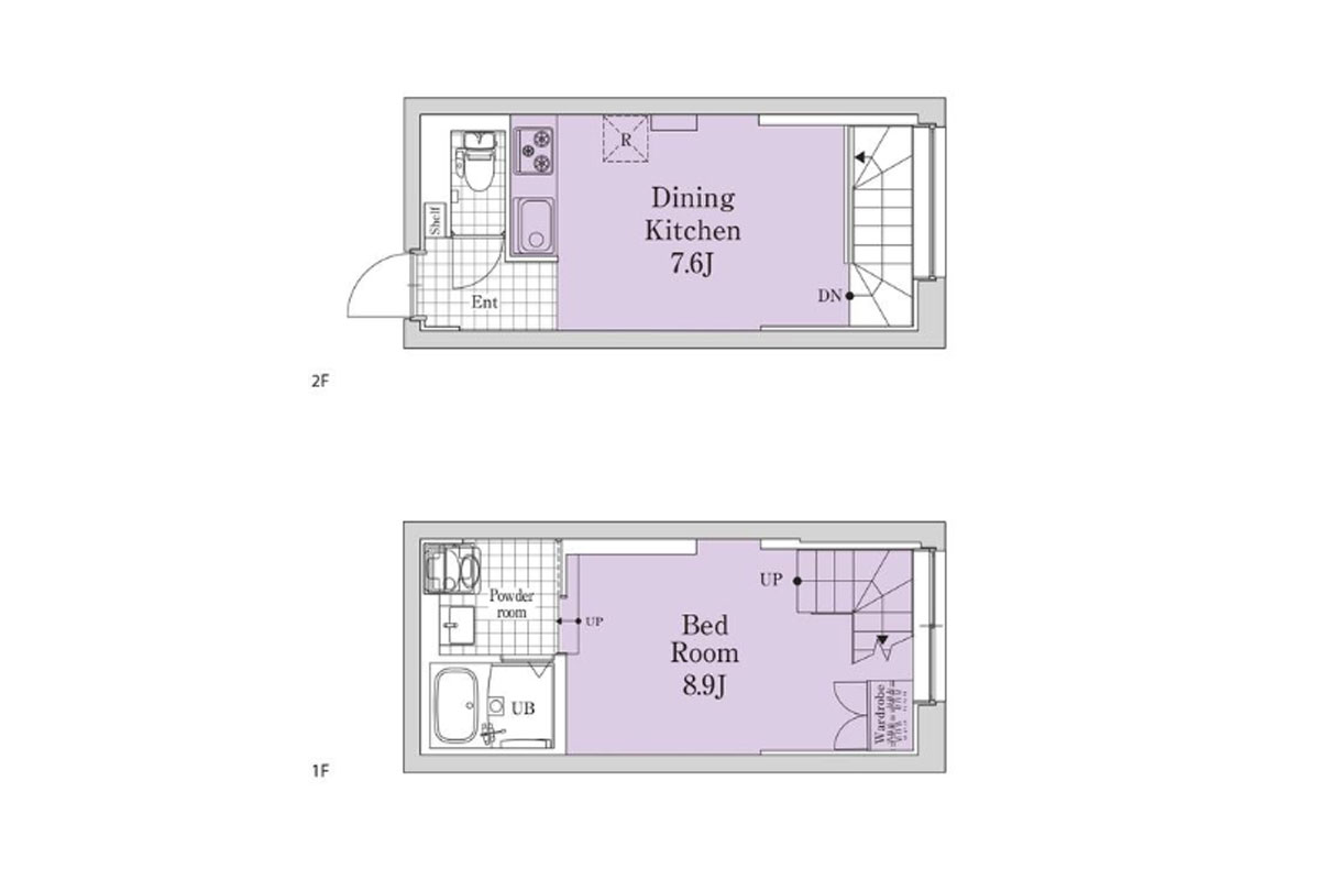 募集中のお部屋は7.6畳のリビングダイニングと8.9畳の洋室があるメゾネットタイプ。