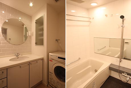 キッチンや洗面台、浴室も白いタイルが貼ってあり、お洒落で清潔感のある内装でした。