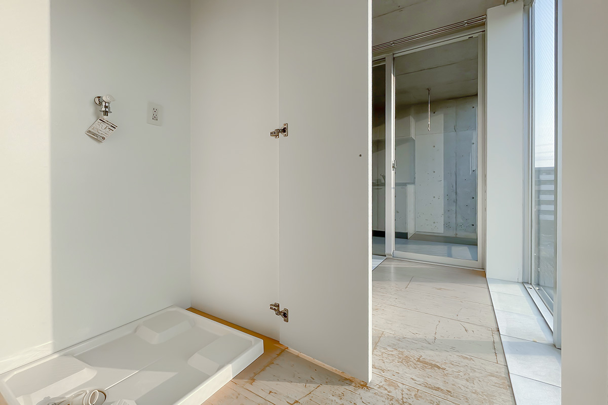 バルコニーは天井があるので、天気の急変する季節にも洗濯は安心ですね。また広さもあるので、椅子やテーブルを出してお茶を愉しむスペースとしても良さそうです。