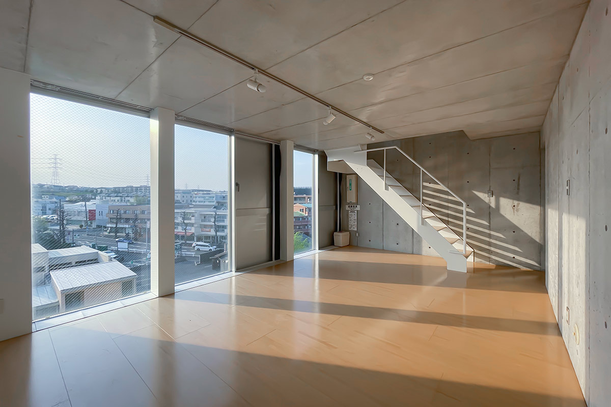 上下階共に規則的に並ぶ縦窓が美しく、採光・風通しの良い空間です。