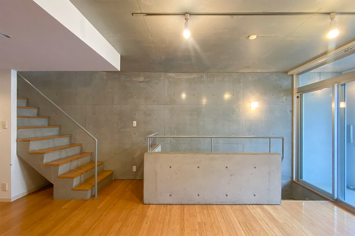 コンクリート打ちっ放しの壁は冷ややかな印象があるかもしれませんが、リビングには床暖房が付いているので冬も安心して過ごせそうです。