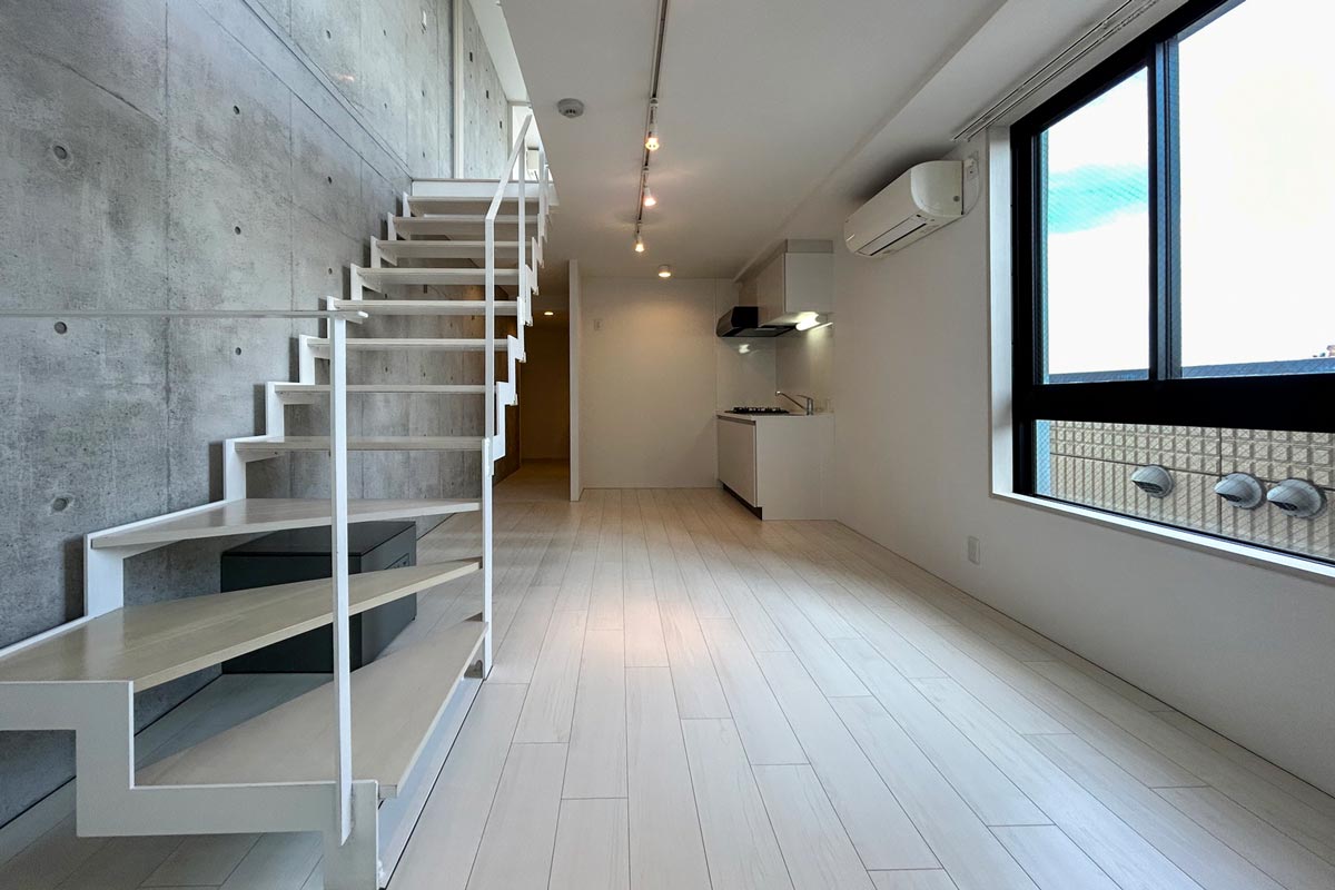 コンクリート打ち放しにメゾネット、コンパクトなルーフバルコニーと魅力的な要素が沢山。