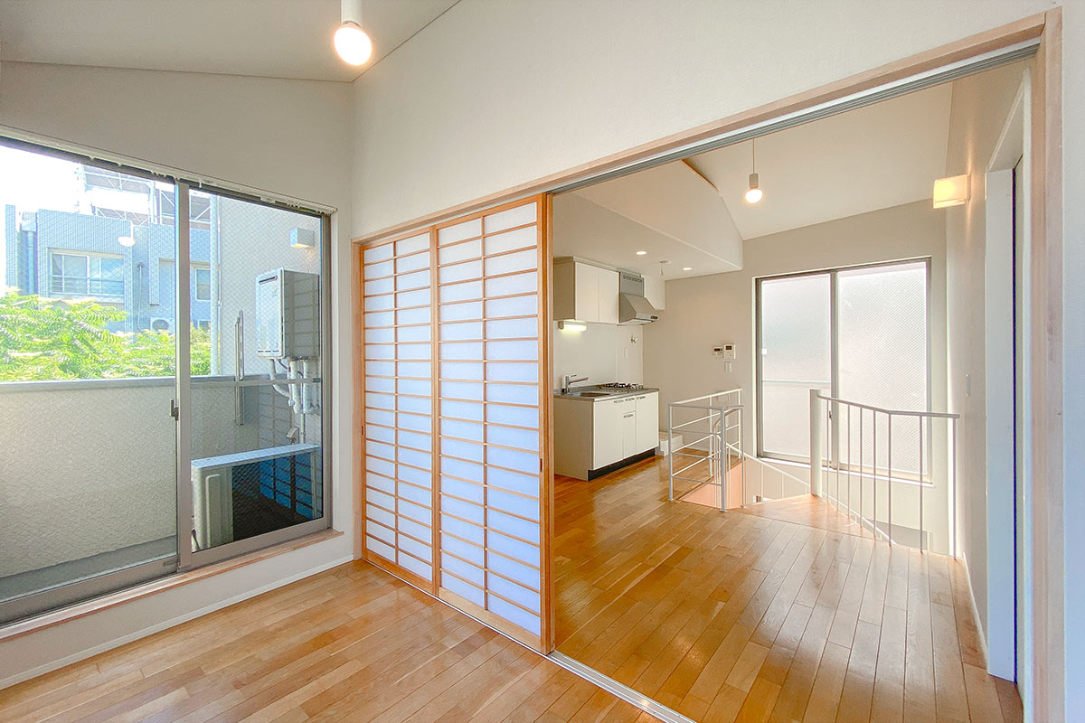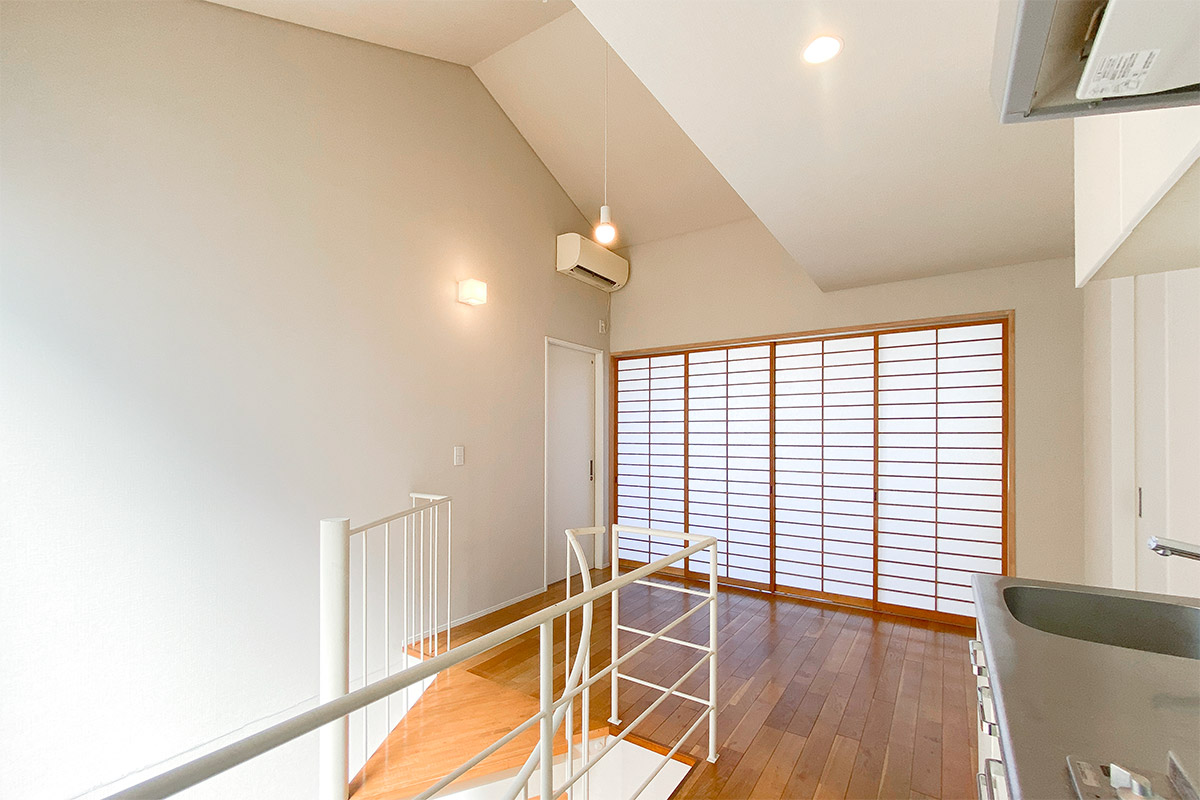 ふすまと屋根裏のようなロフトのある一風変わったおうち。