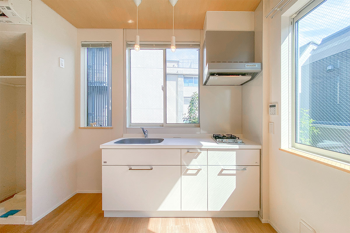 洗面所やキッチンにも窓があり、換気もしやすい嬉しい環境。