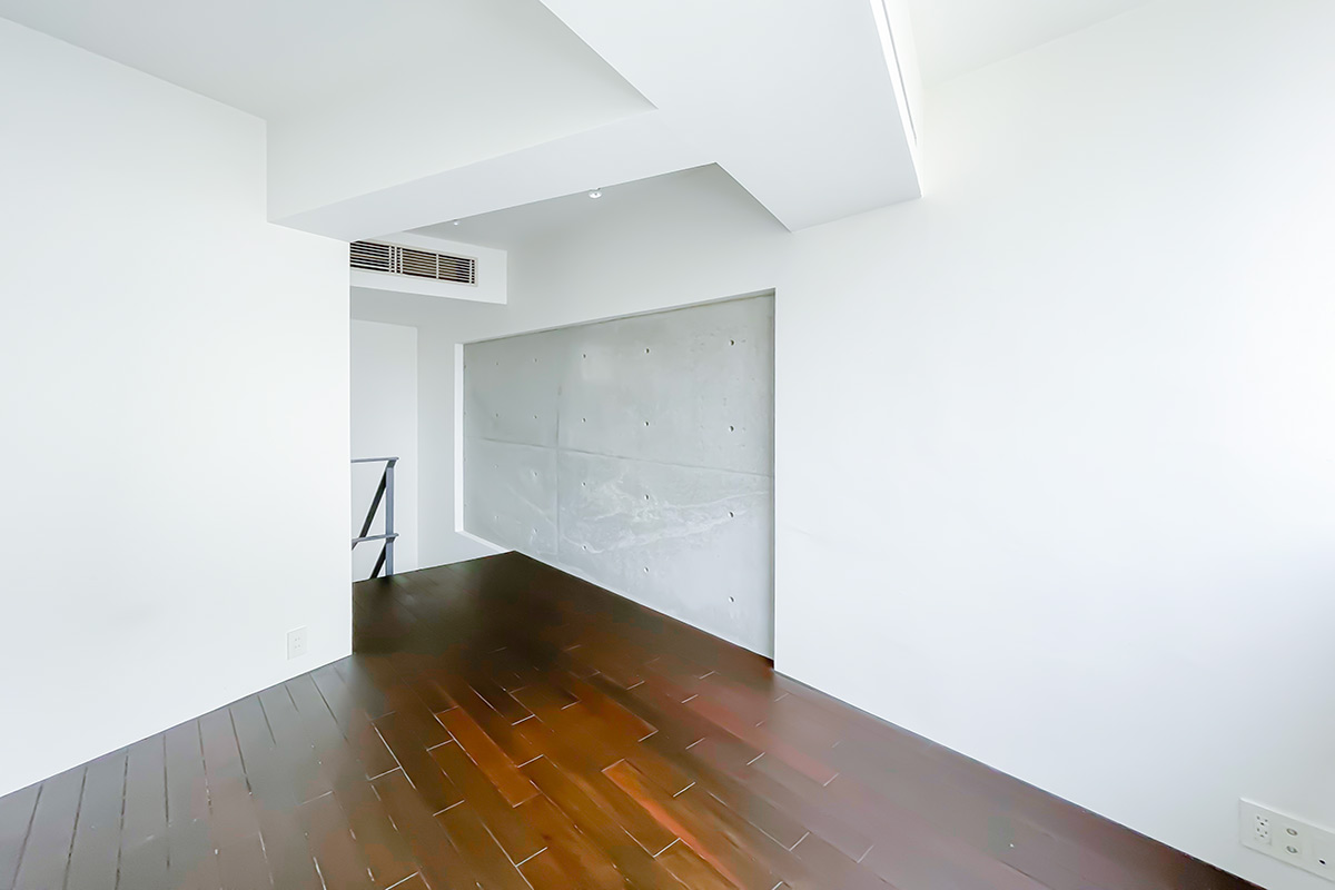 コンクリート打ち放しや真っ白な壁は、緑やアートが似合うデザインです。