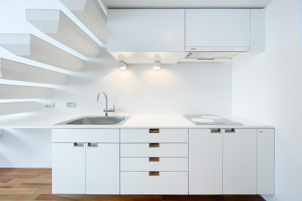 真っ白な内装はシンプルな中にアクセントを加えやすい。花や植物、アートをちょっぴり足すだけで、おしゃれな雰囲気を醸し出してくれそう。