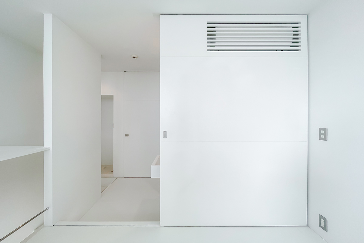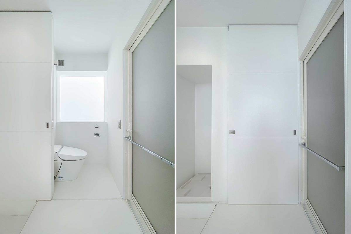水まわり空間は一見通路のような空間で、脱衣所がないかと思いきや、扉を閉めていくと脱衣所が出現。