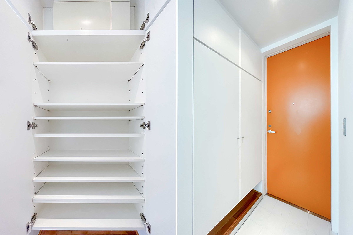 温かみあるフローリングのカラーと玄関ドアのオレンジがちょっぴり北欧な雰囲気もありますね。