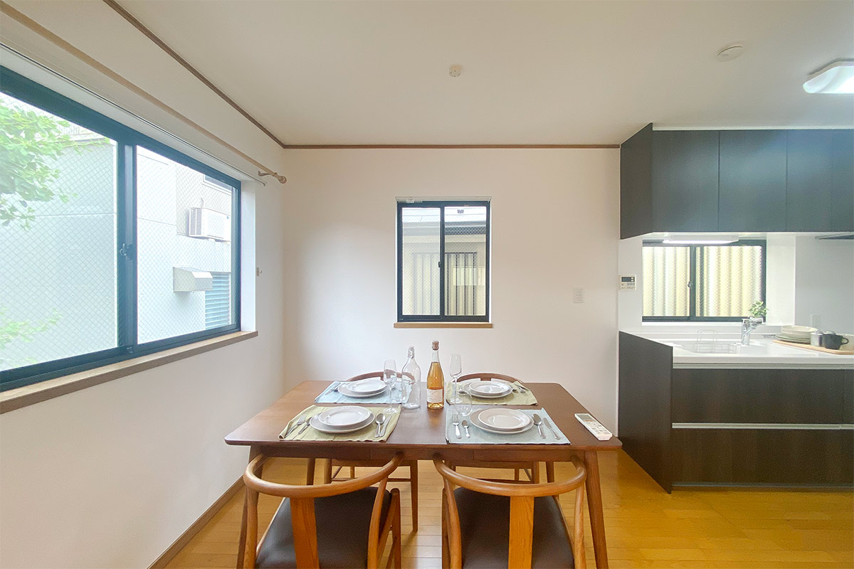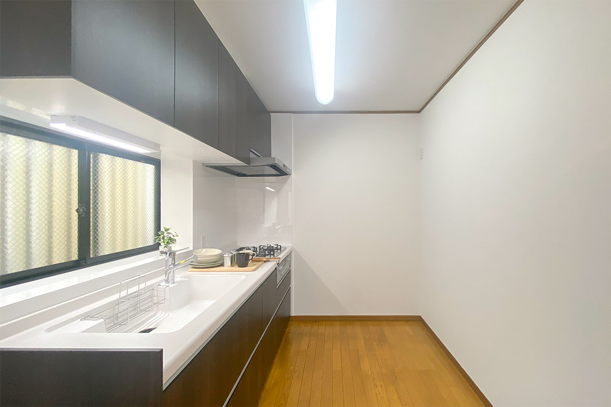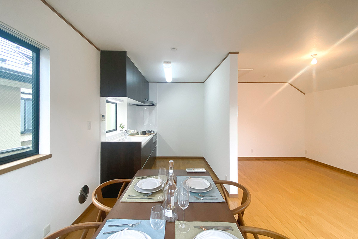 三面採光でキッチンにも窓があり、リビング全体的に明るい空間が広がります。