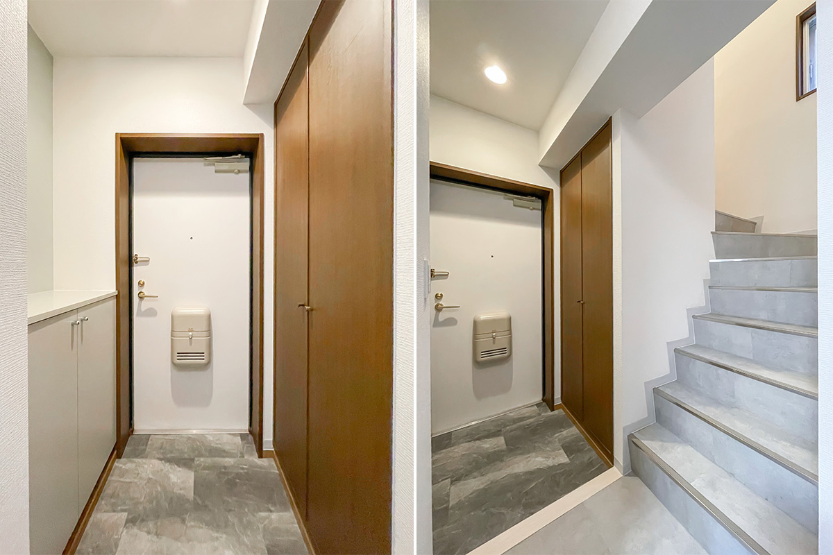角部屋で独立性高く、玄関・廊下・各階にバルコニーがあるからでしょうか、ミニ戸建てのような気分です。
