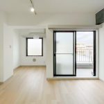 玄関を入ってすぐの左手側には約6帖の納戸、左手側には水回りがまとめられ、奥へ進むと約20帖のリビングダイニングキッチンと約6帖の洋室という間取り。