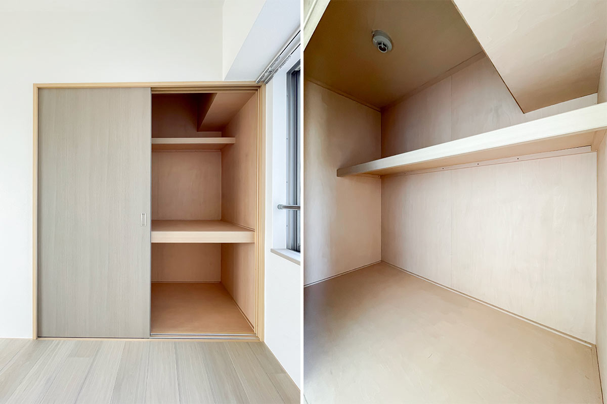 玄関側の洋室は収納がないので、仕事部屋・納戸としての使い方も良さそうです。