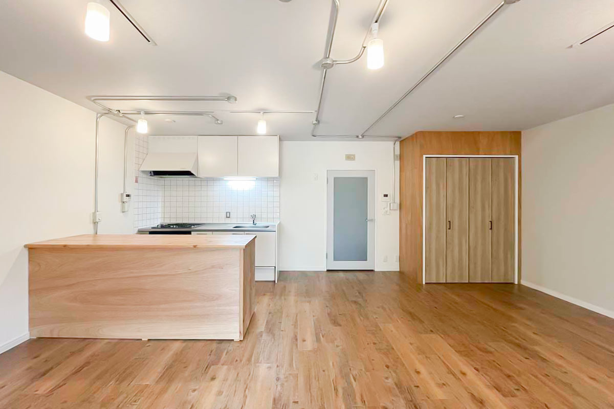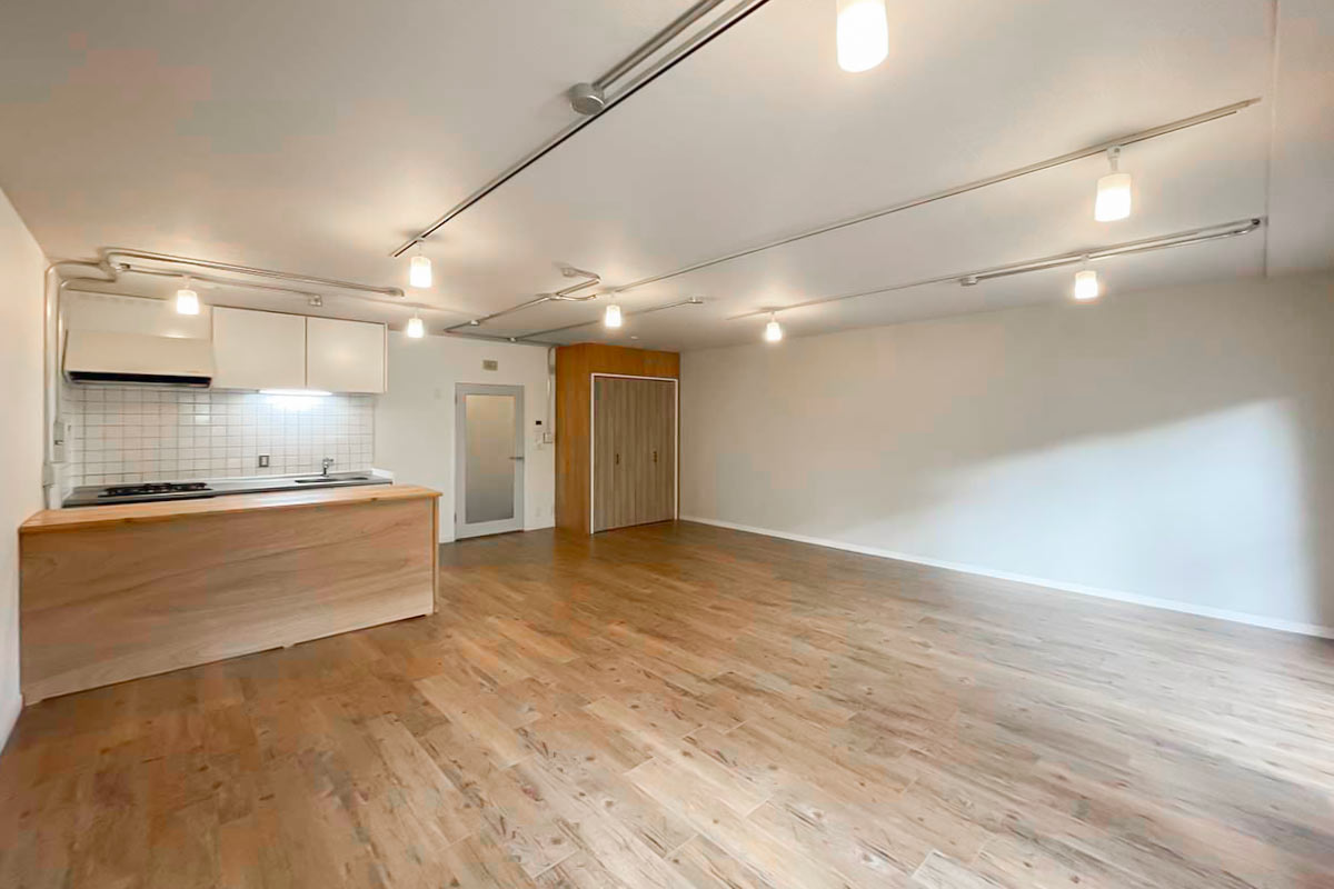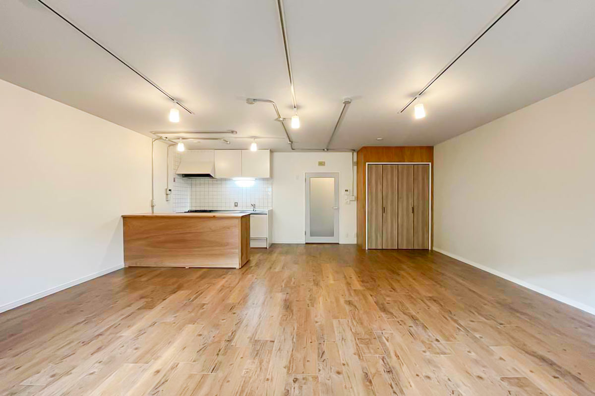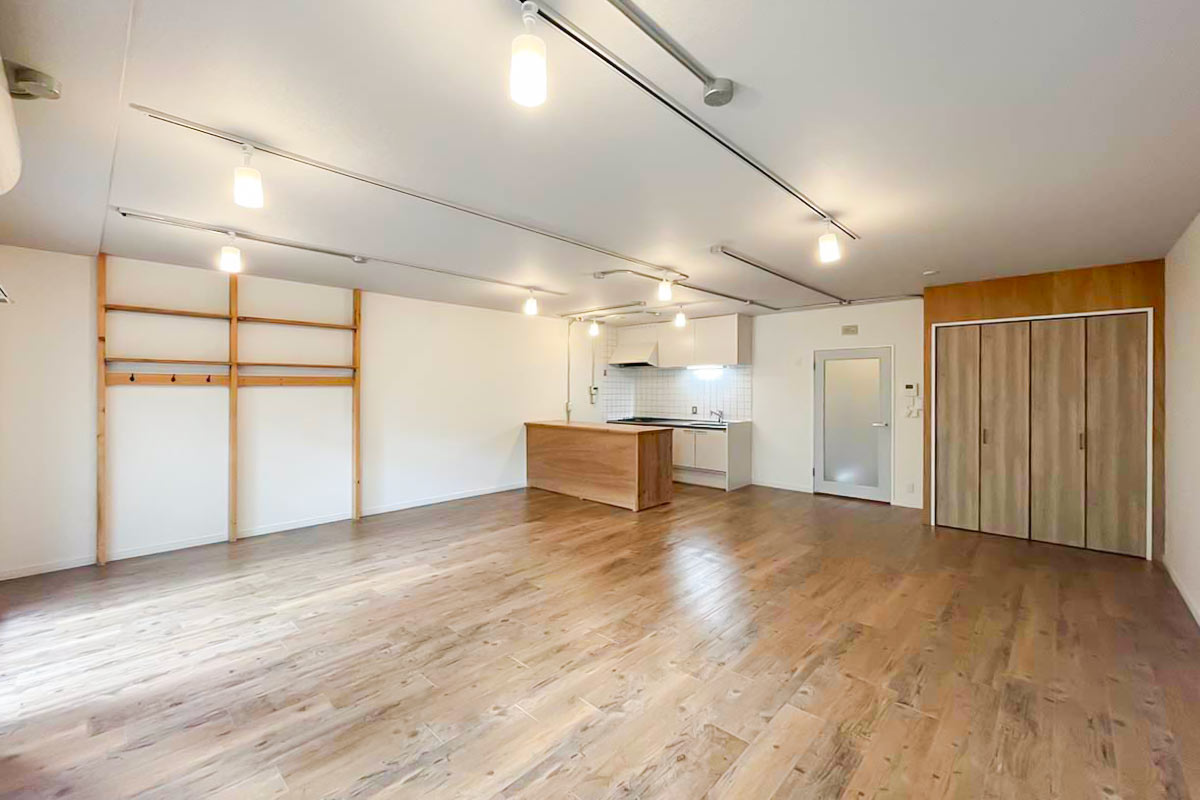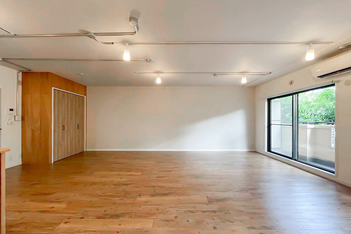 リビングは19.7帖とほぼ20帖の広さで、正方形に近い形なので家具配置の自由度も高いリビングです。