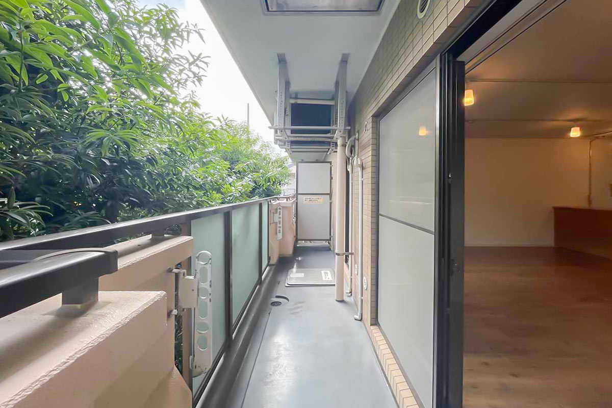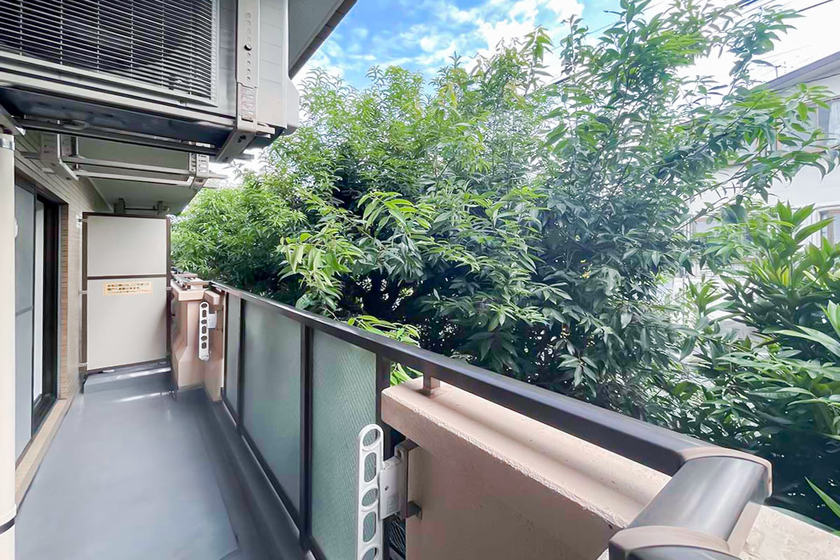 物件の目の前にも小さな公園があり、エントランス周辺も緑に囲われ、部屋に入っても緑。