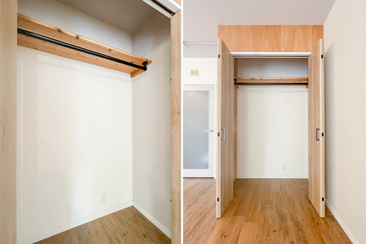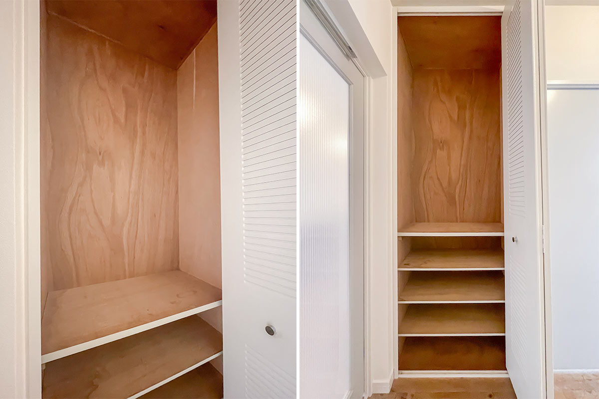 収納はリビング、廊下、洋室それぞれにたっぷりと備え付けられています。