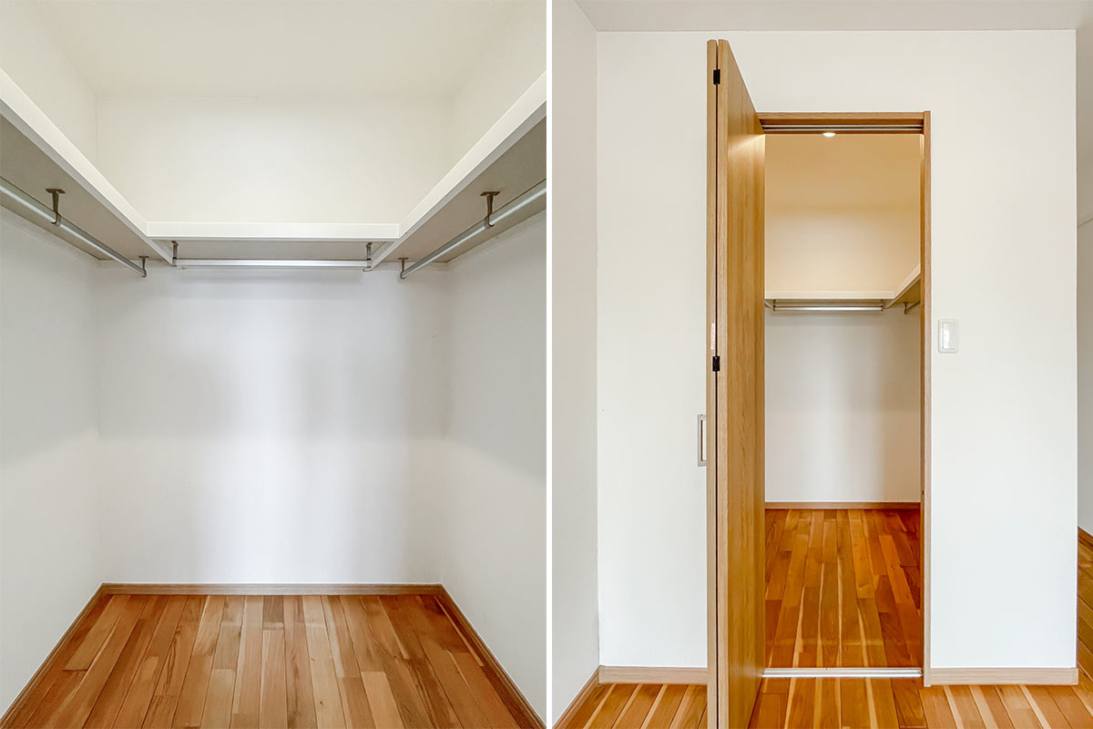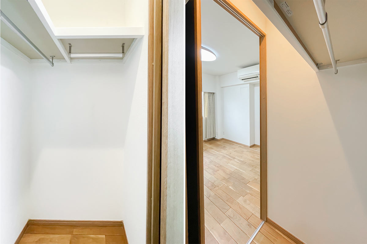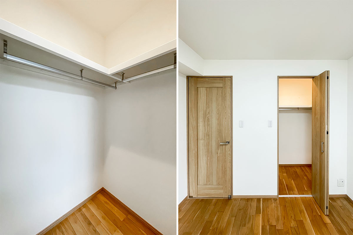 玄関には大容量のシューズインクローゼット、洋室2部屋ともにウォークインクローゼットがあります。