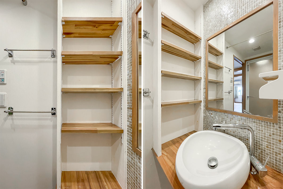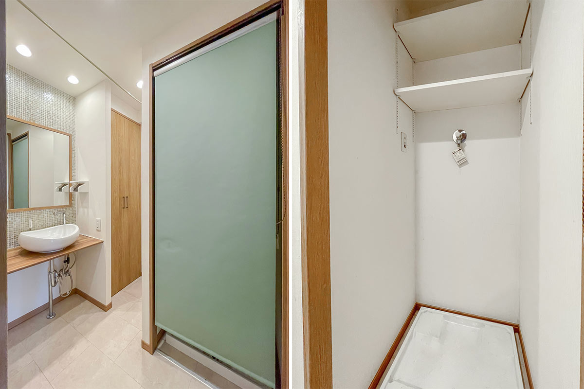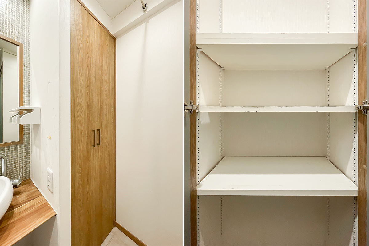 さらに洗面所奥にも扉付きの収納スペース付き。