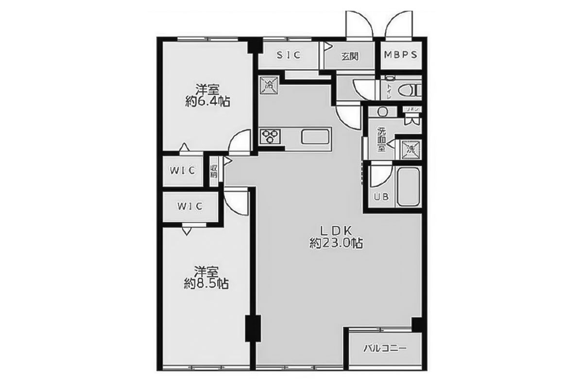 広々23帖のLDKに加えて、6・8帖と個室もしっかりとした広さ。2人暮らしにもファミリー層にもおすすめです。