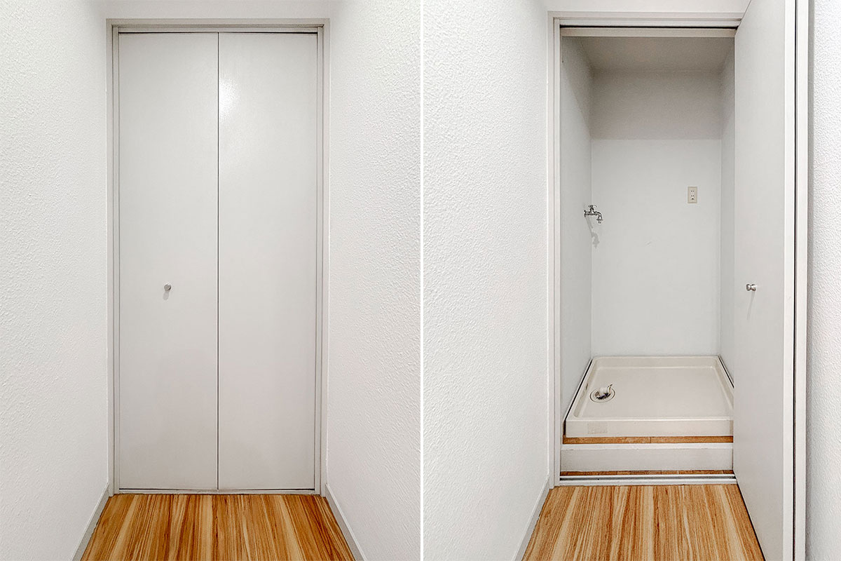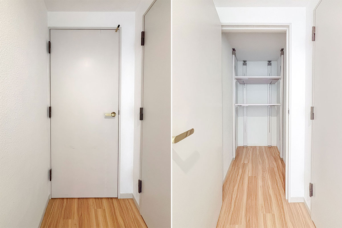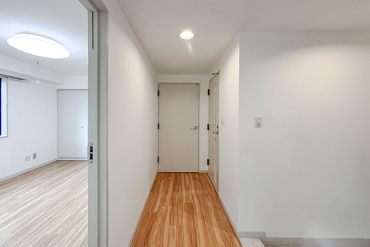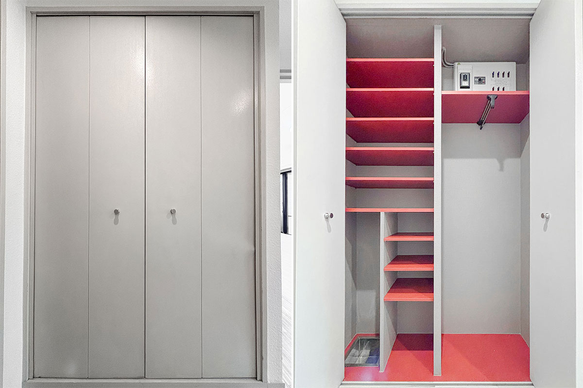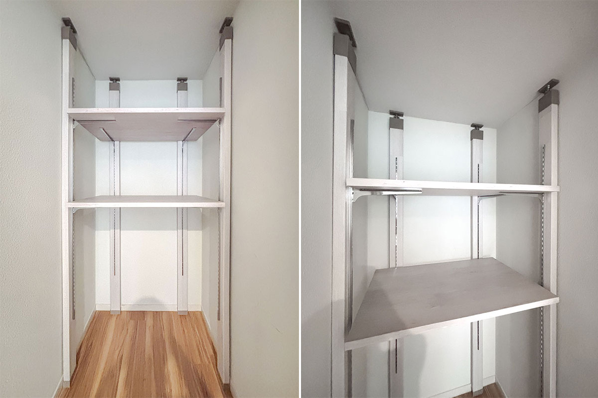 廊下奥には可動棚付きの収納があり、日用品ストック等に重宝しそうです。