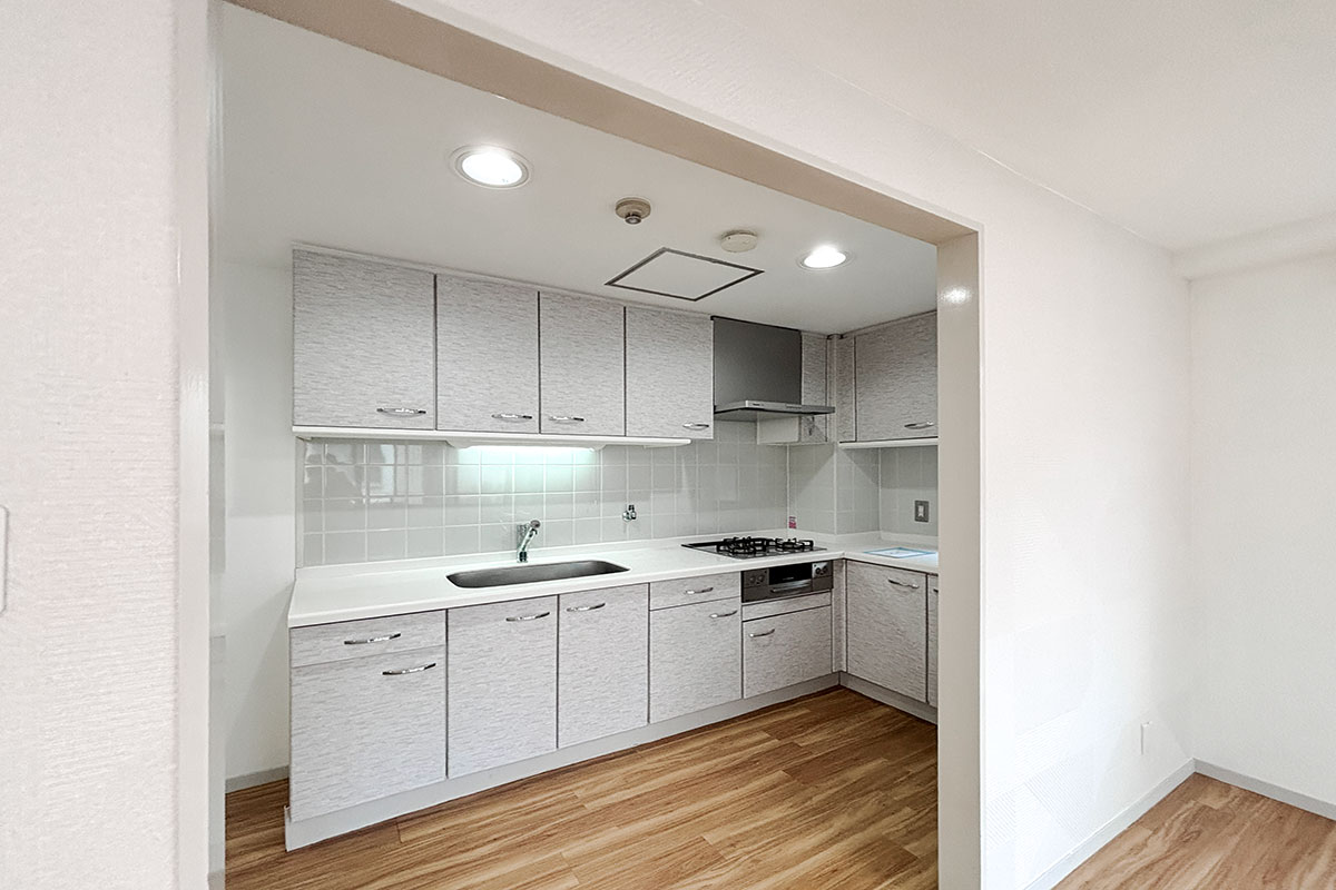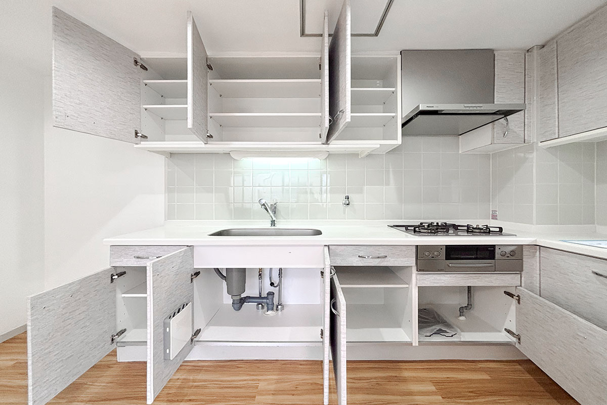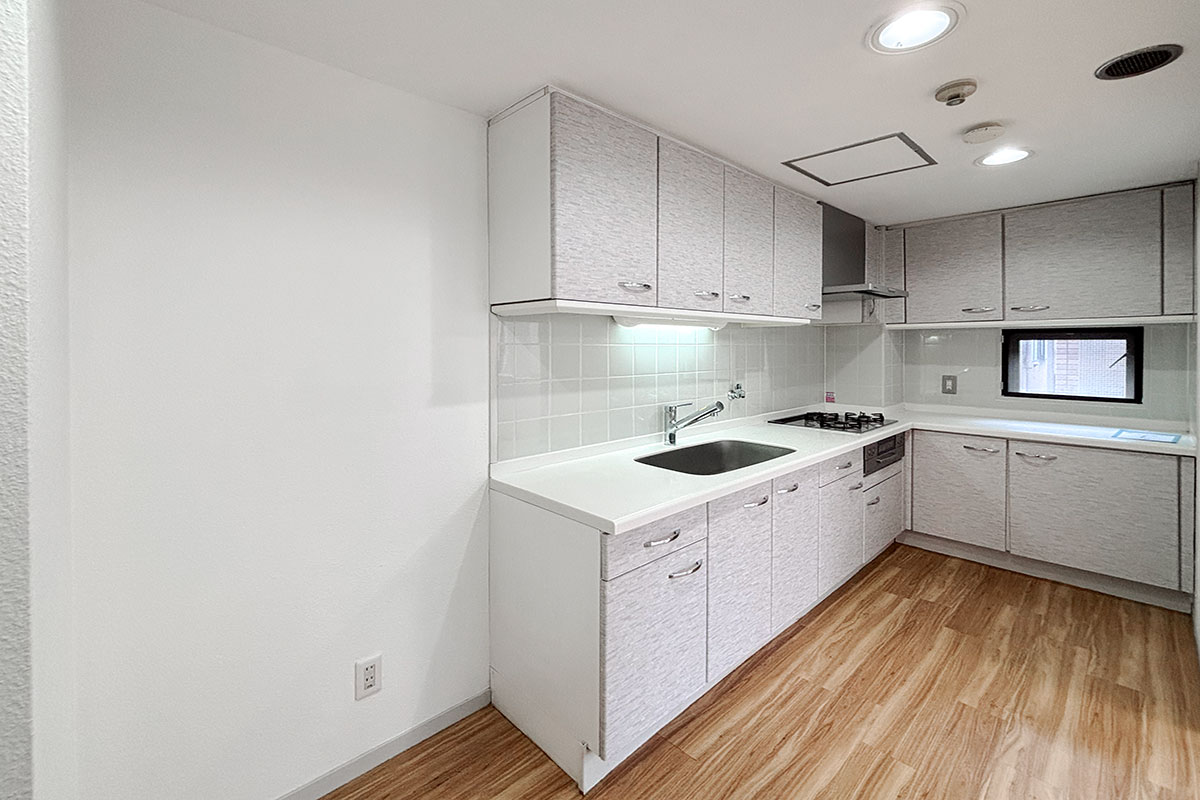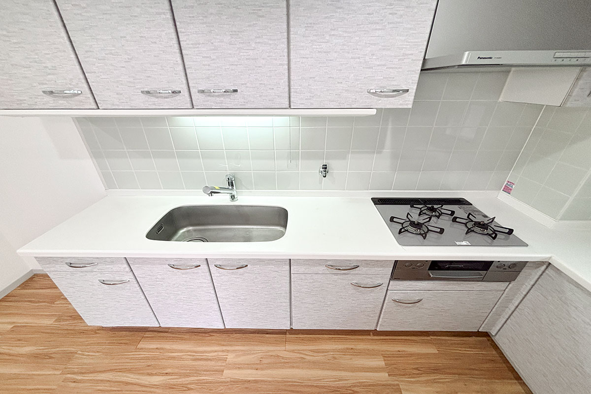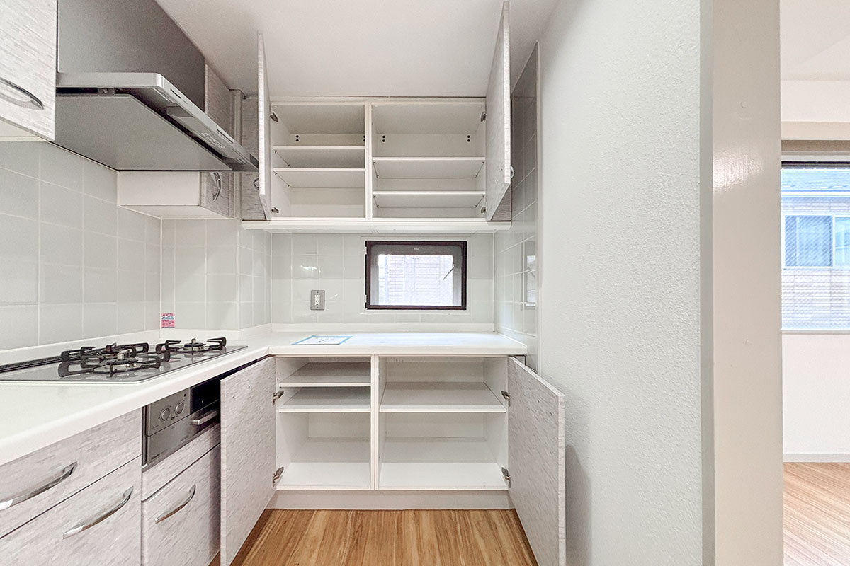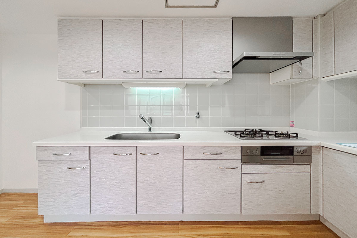 L字型キッチンは上下に収納も多く、広々とした作業スペースがうれしいです◎