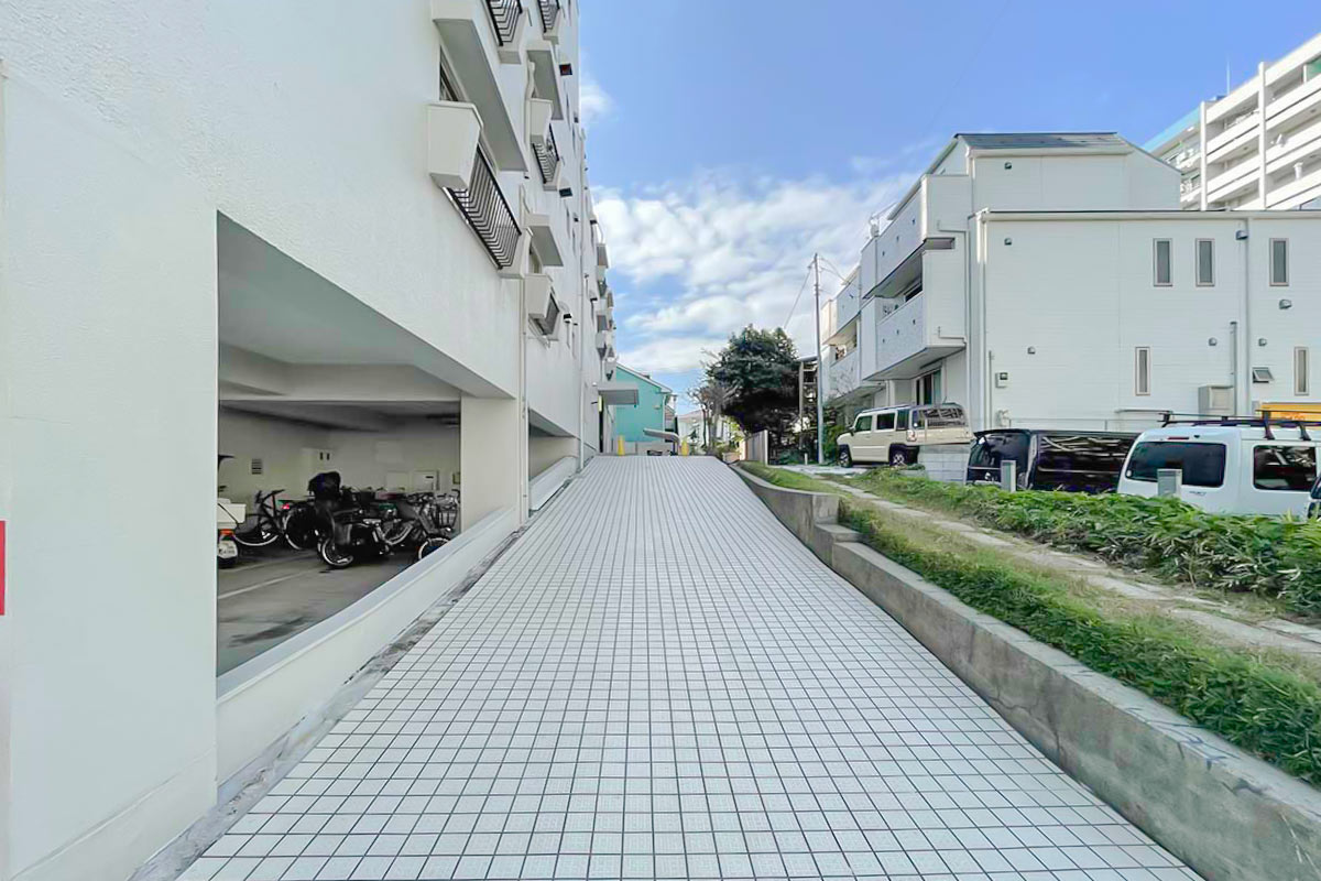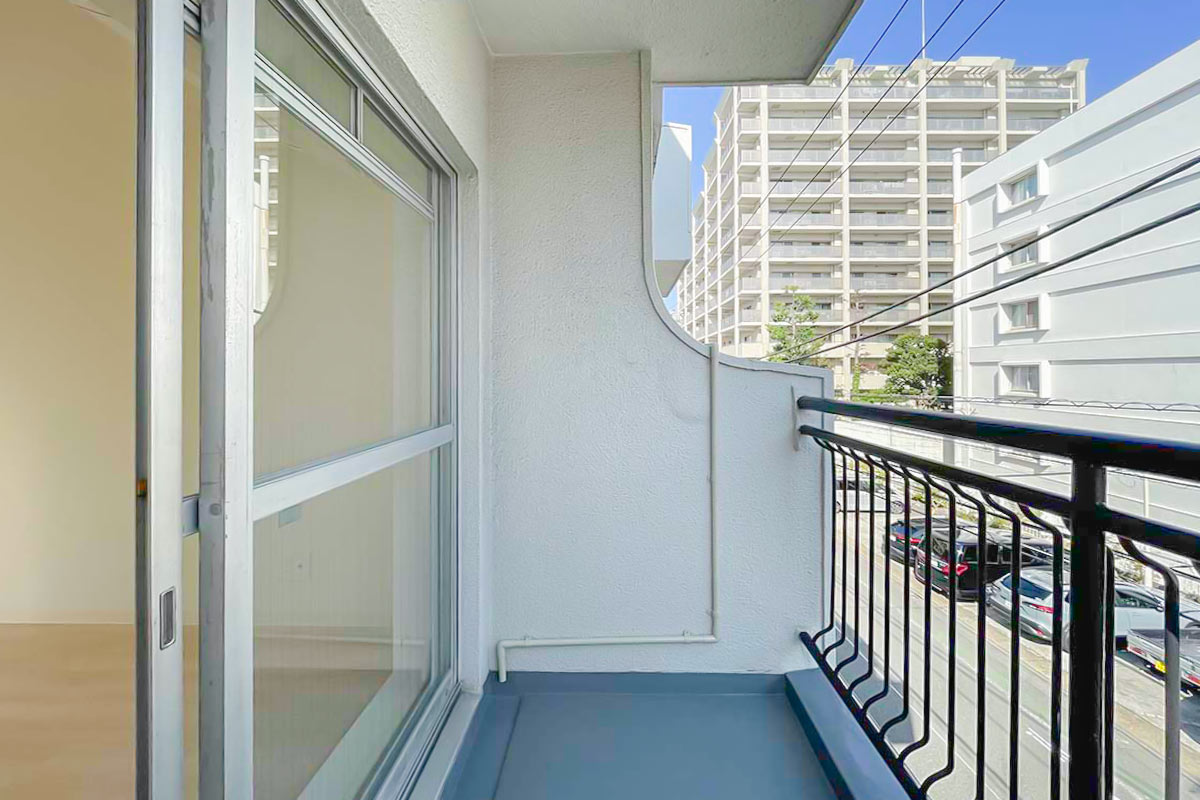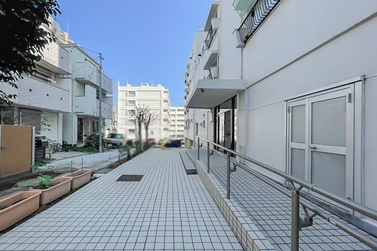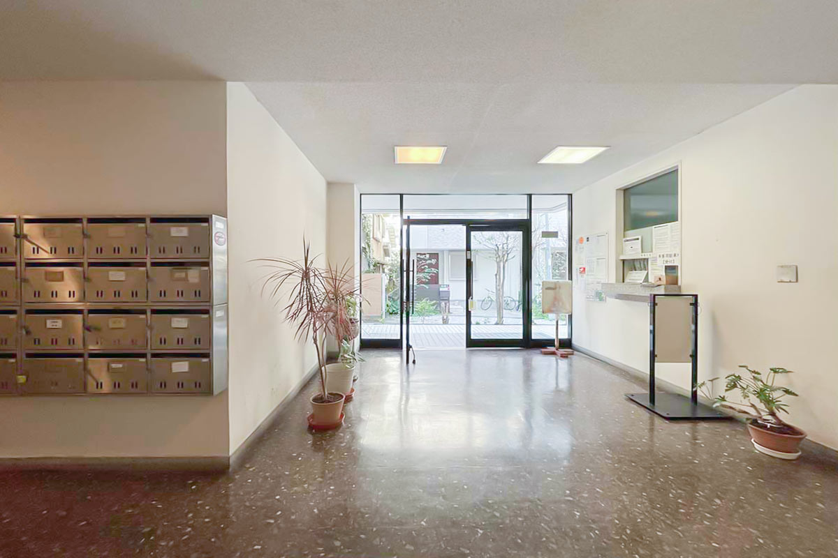 バルコニーがせり出した外観が特徴的で、築50年を超えたヴィンテージの趣がありながら、2019年に大規模修繕工事が完了しており、管理人さんも常駐されているため共用部分の手入れもしっかりされている印象。