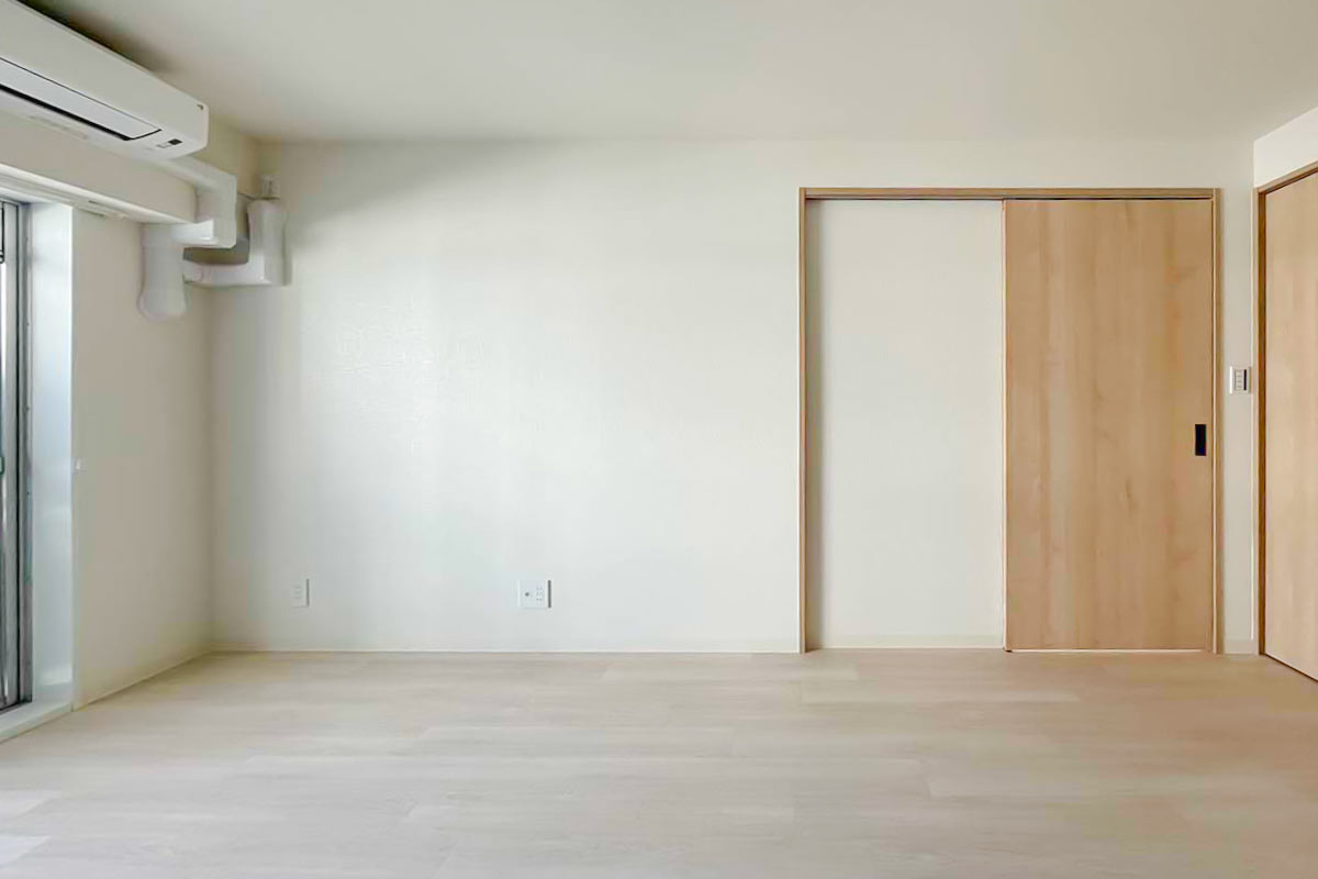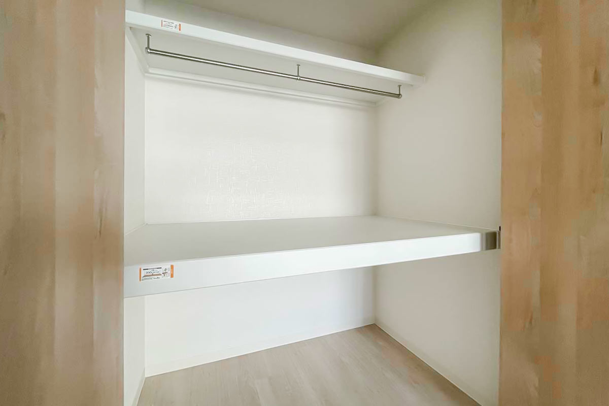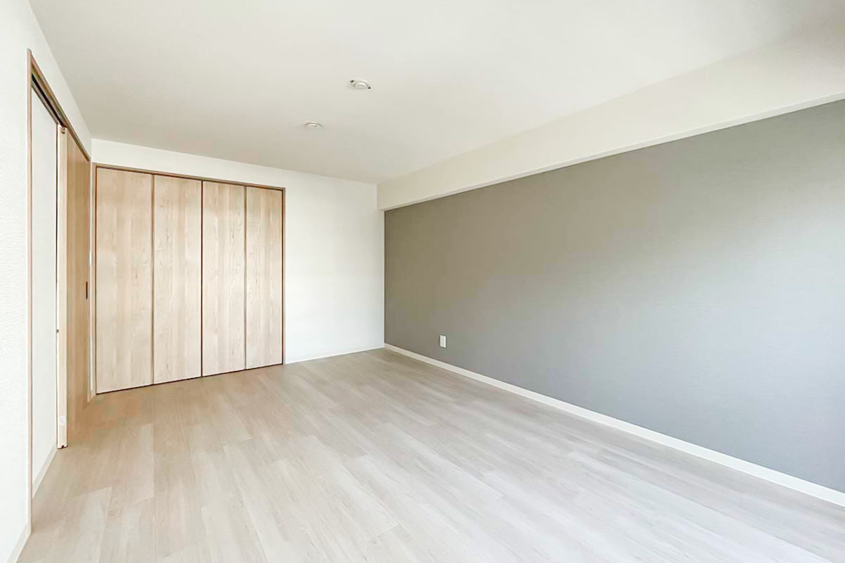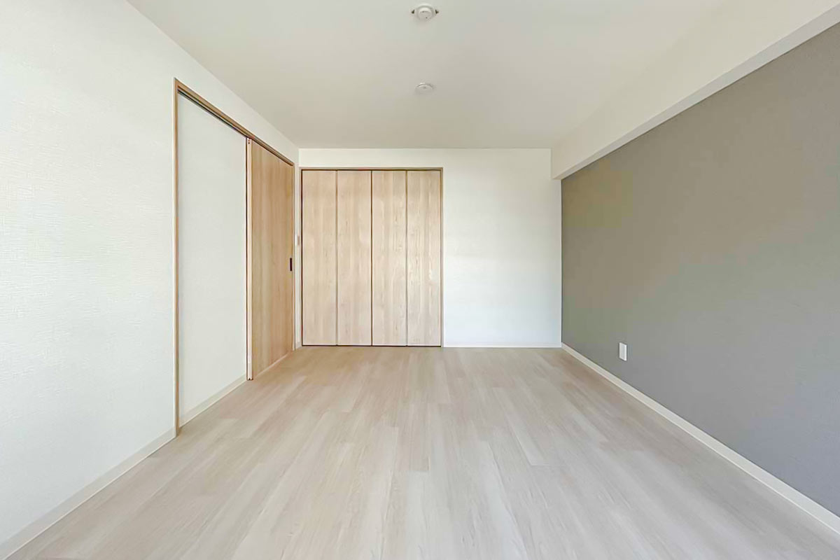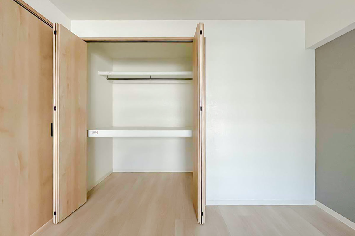 洋室は約7帖。クローゼットは中板が残っているため、長い丈の衣類の収納は工夫が必要です。