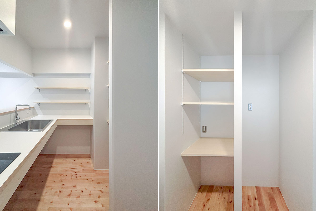 パントリーとして調理家電を置いたり、お気に入りの食器を並べたりとレイアウトを考えるのも楽しそう。