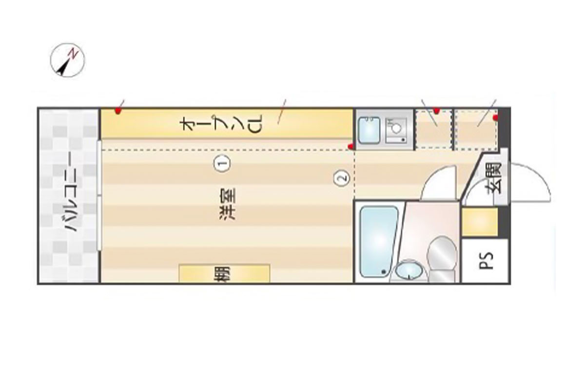 部屋は16㎡のワンルーム。部屋は5~6帖の広さです。