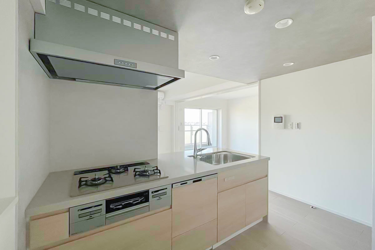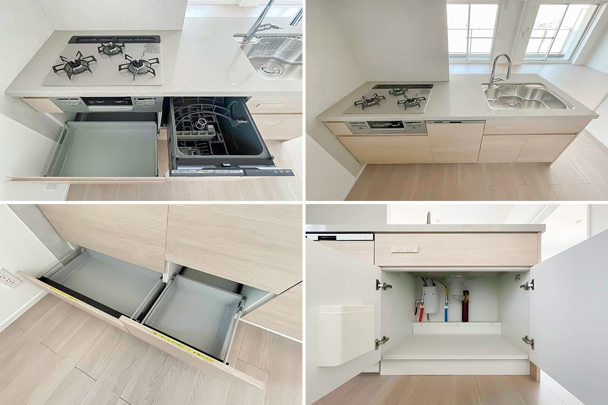 キッチンスペースも広々としており、3口コンロ、グリル、さらに食洗機も!!これは嬉しいですね。