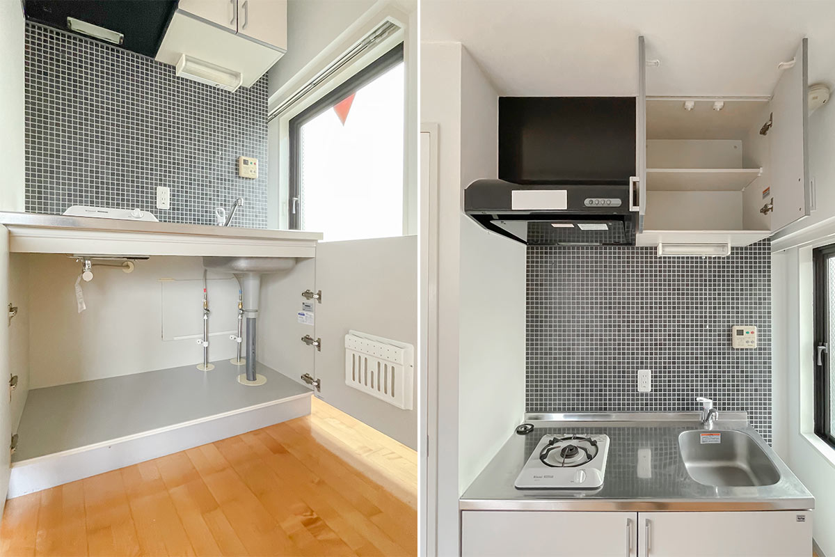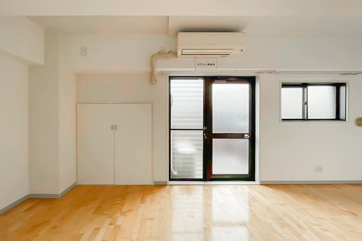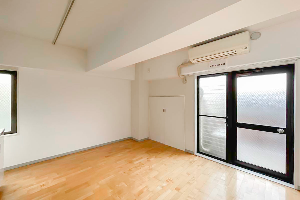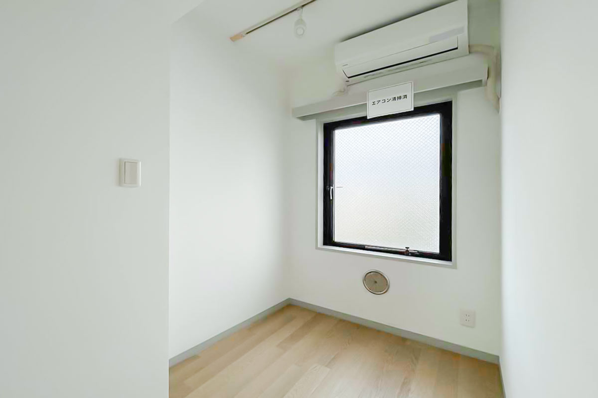 収納はいわゆるクローゼットではないため、ベッド下収納やハンガーラックが必要です。