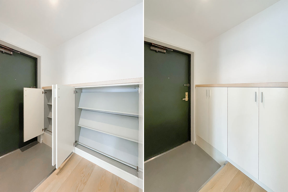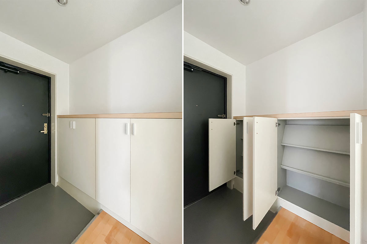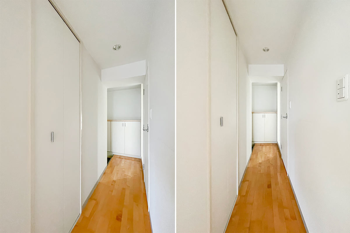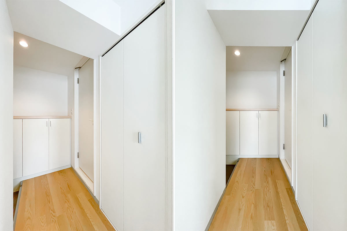 さきほどの凸部分にハンガーラックをはめ込んで、オープンなウォークインクローゼット空間を作ってもいいかもしれませんね。