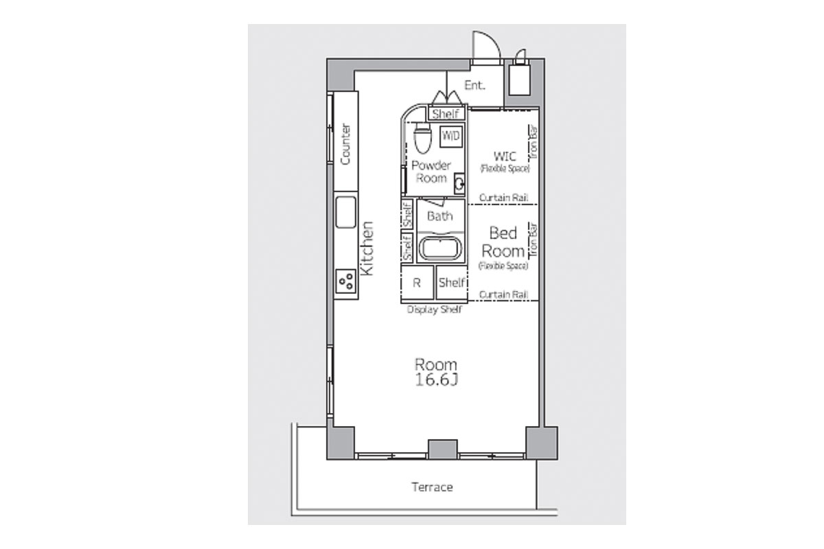 フリースペースはカーテンで仕切りを設けて、寝室+ドレスルームといった使い方もOK!