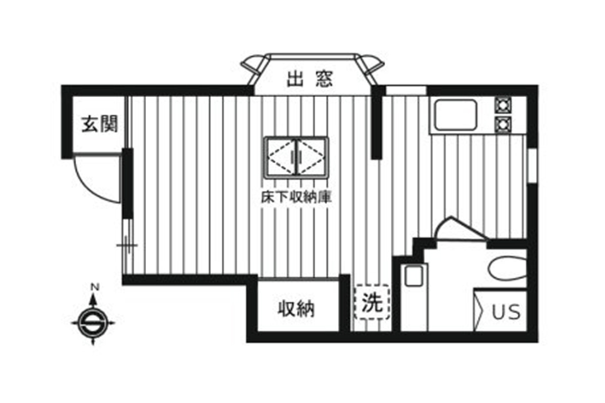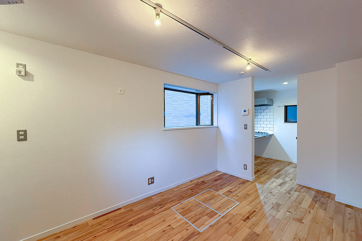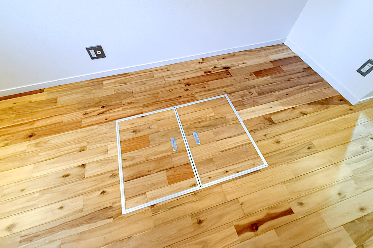 20㎡弱とコンパクトなお部屋ですが、オープンクローゼットの他に床下収納付き!