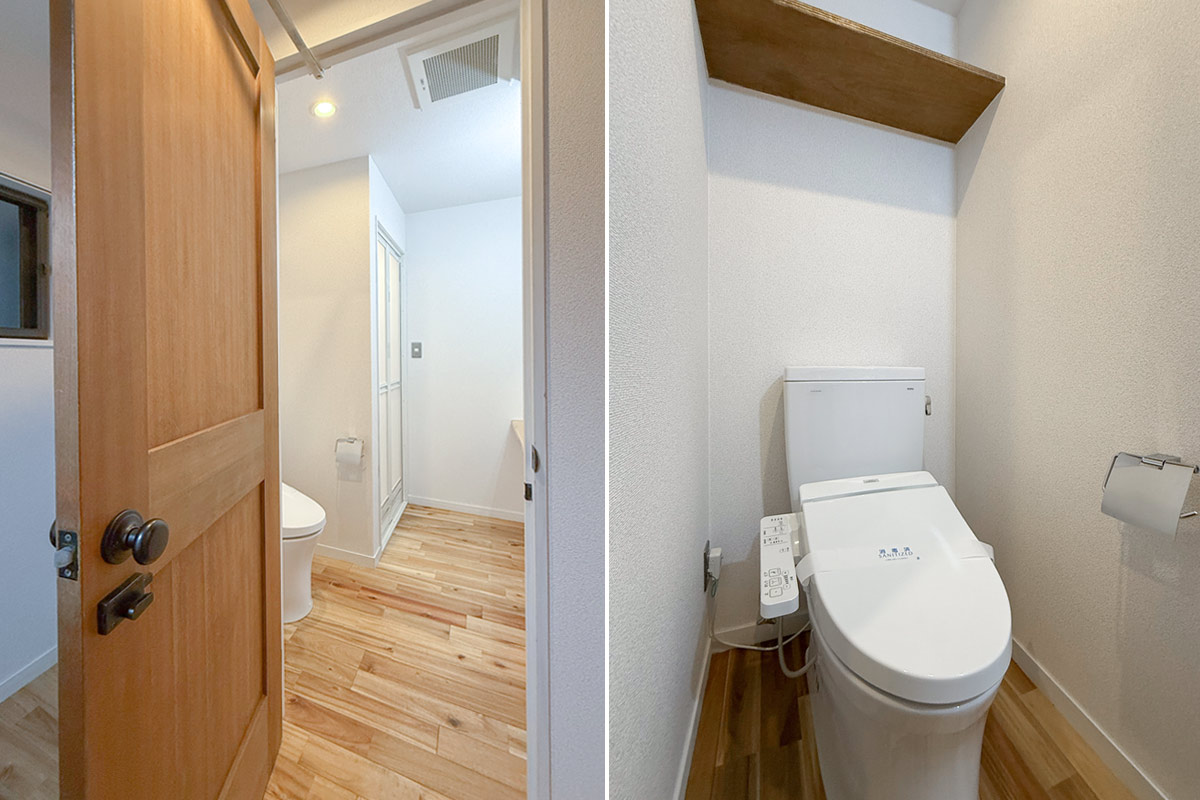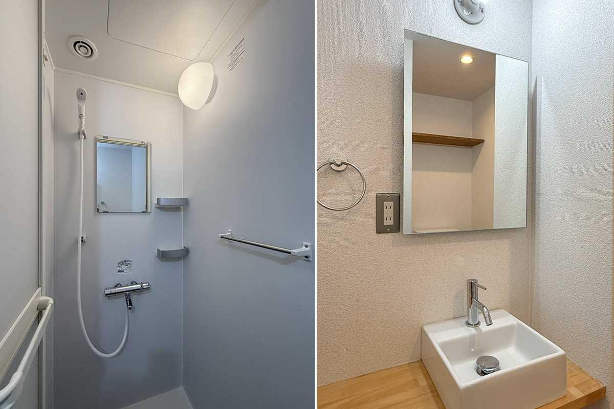 水回りはシャワールームのみですが、バストイレ別、独立洗面台の作業スペースにもゆとりがあります。