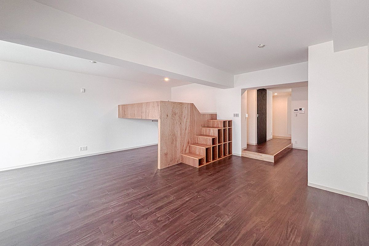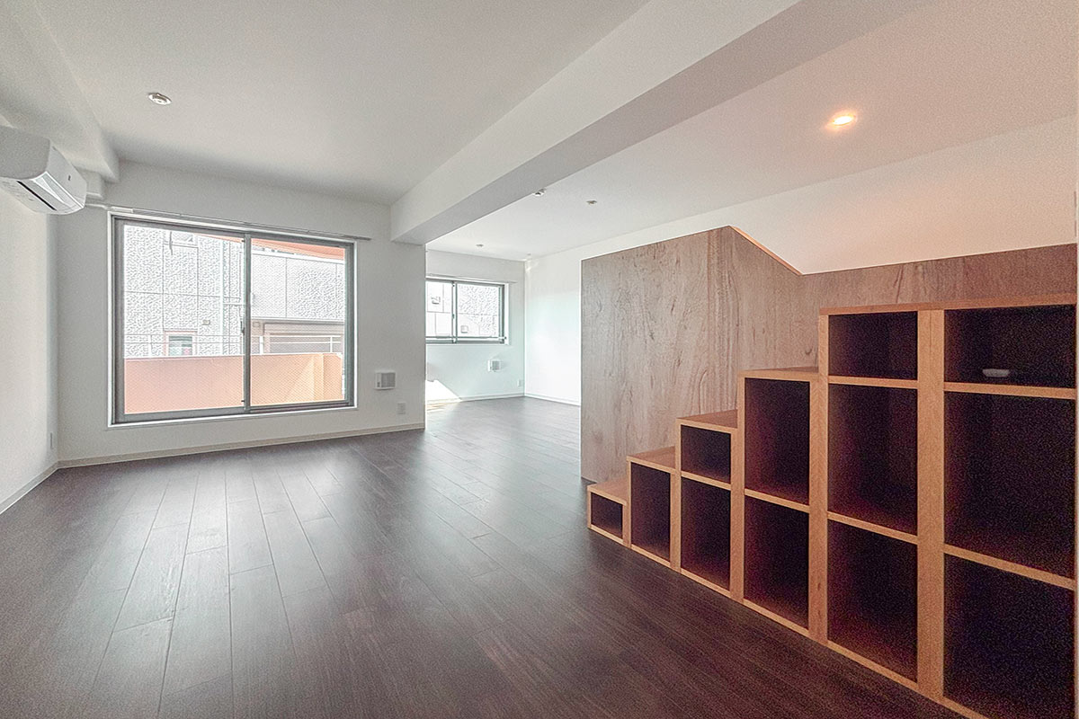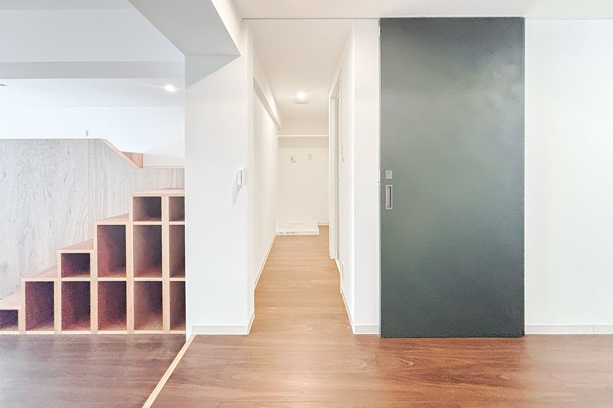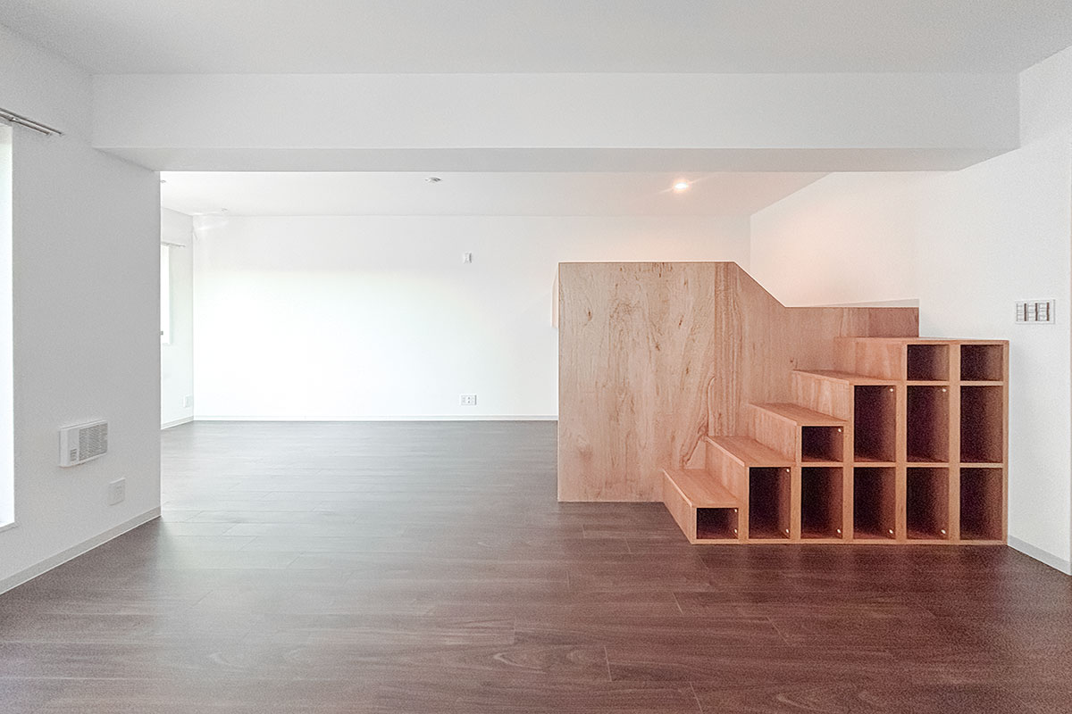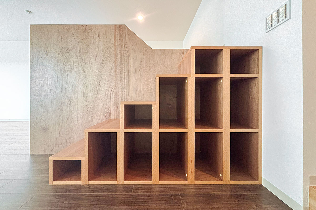 階段下は造作棚になっていて、本棚やコレクション用にもってこい!