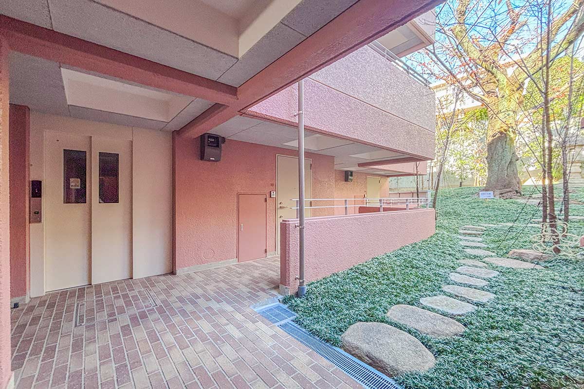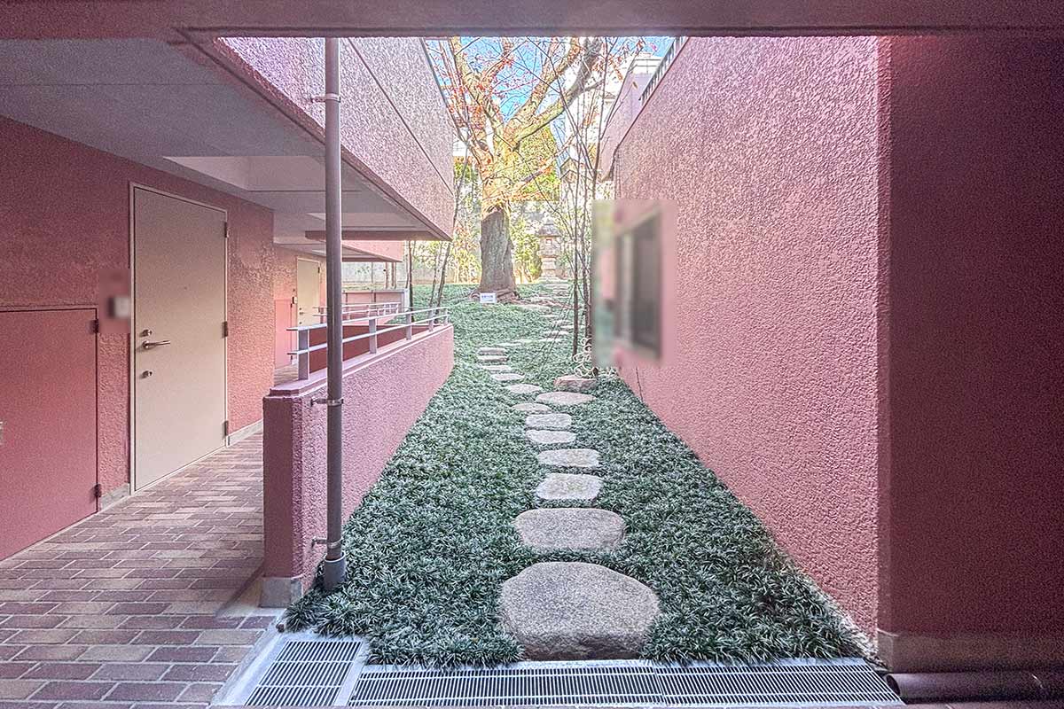 エントランスを通り抜けて広がる中庭には、竣工時から残る桜のシンボルツリーがあり、住民の方を見守っています。