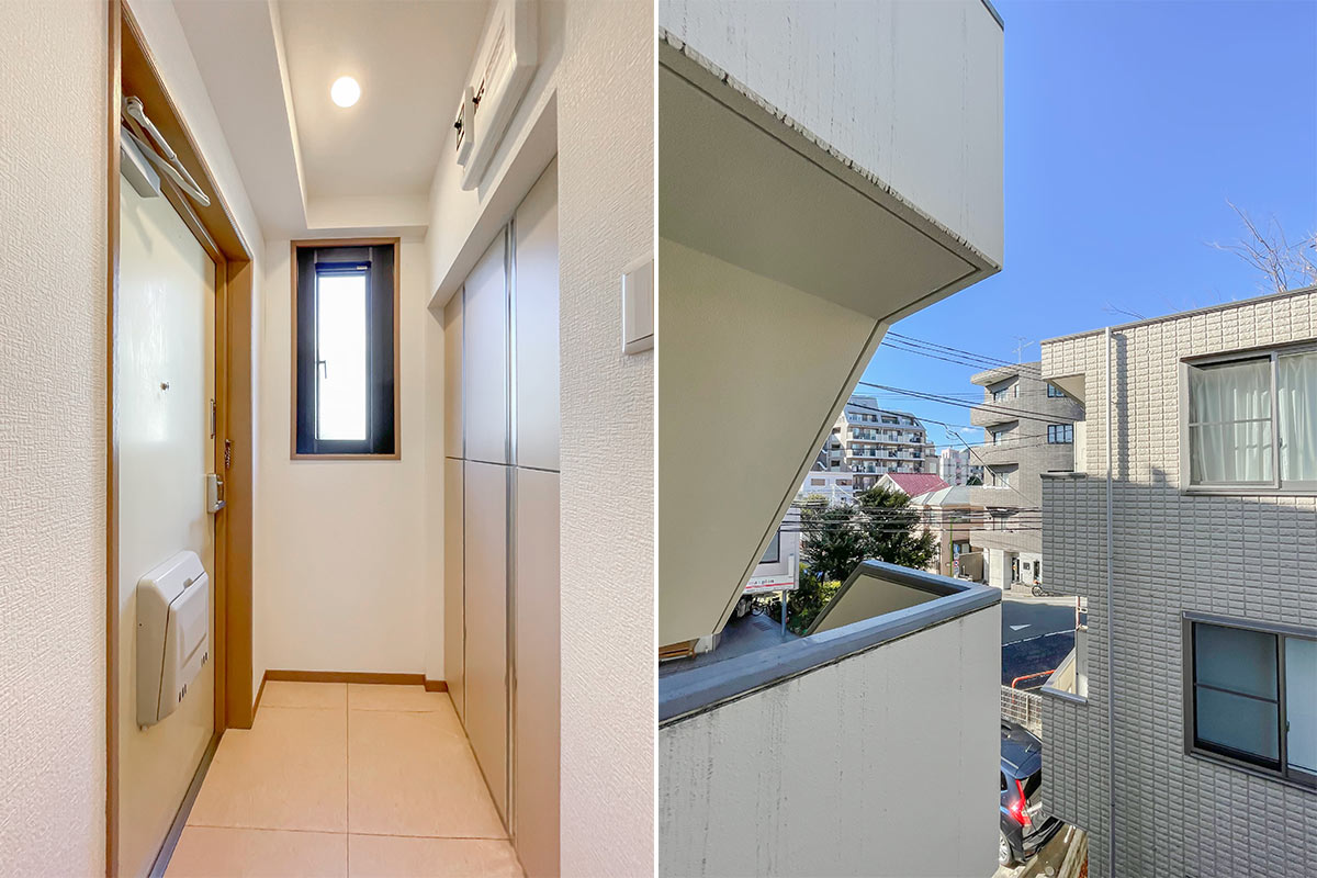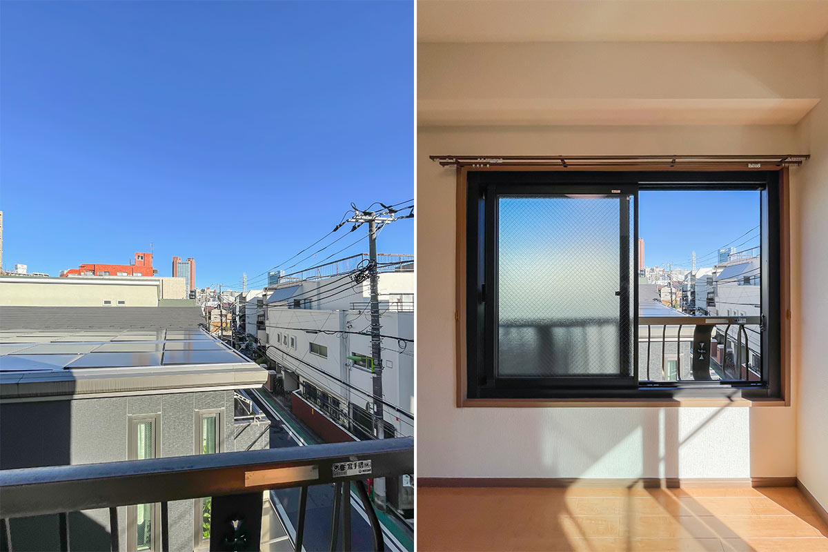 物件は賑わいのあるアーケード街を抜けた先、弦巻通り沿いのマンションで、すぐ近くには「蛇崩川緑道」が弦巻通りと並走している場所なので、散歩・ウォーキングにもおすすめです。
