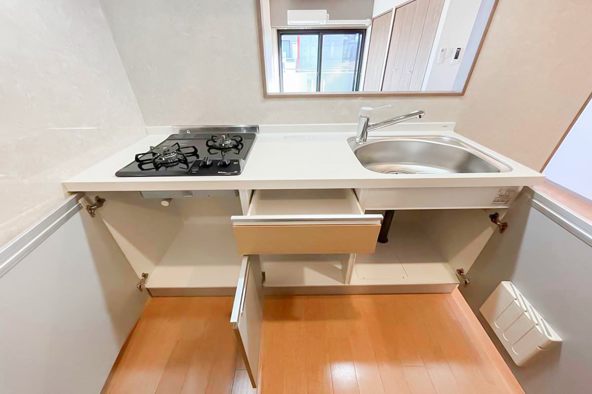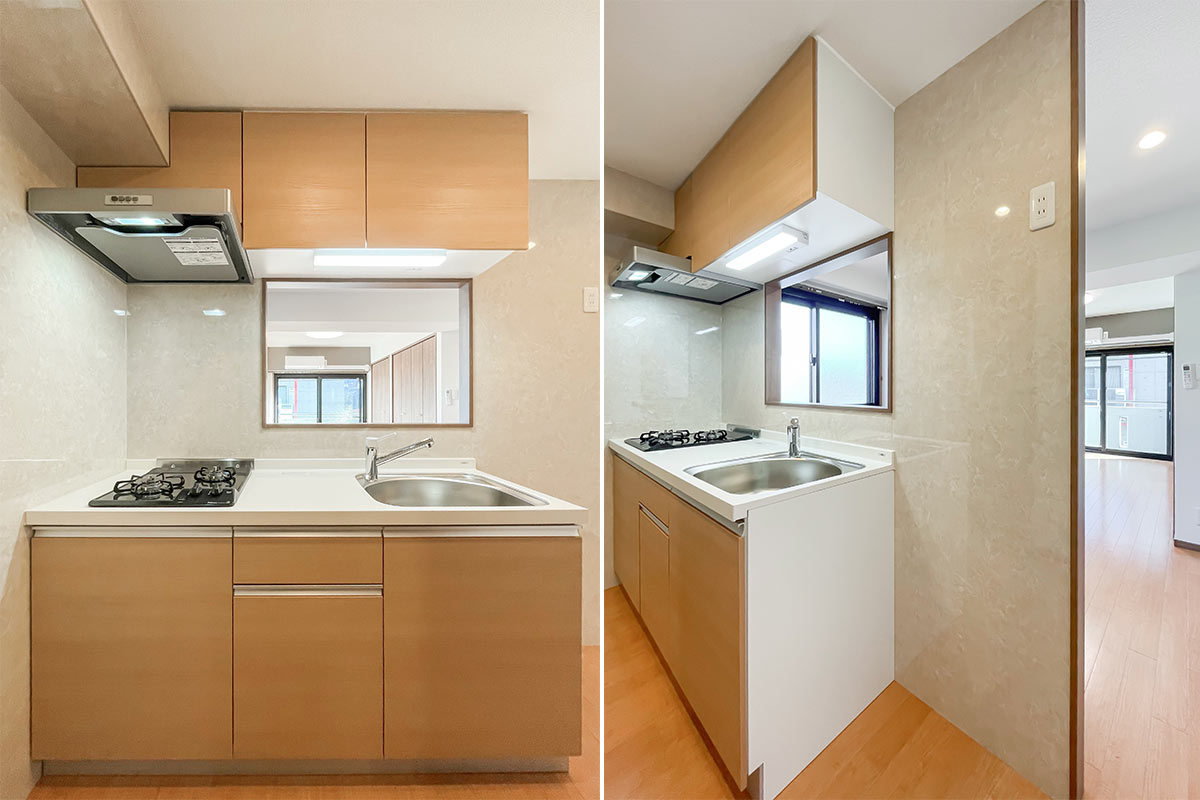 カウンターキッチンの分少し部屋の面積を削っていますので、