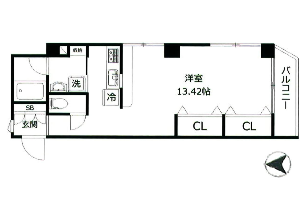 お部屋は3階、角部屋の約13.4帖のワンルーム。