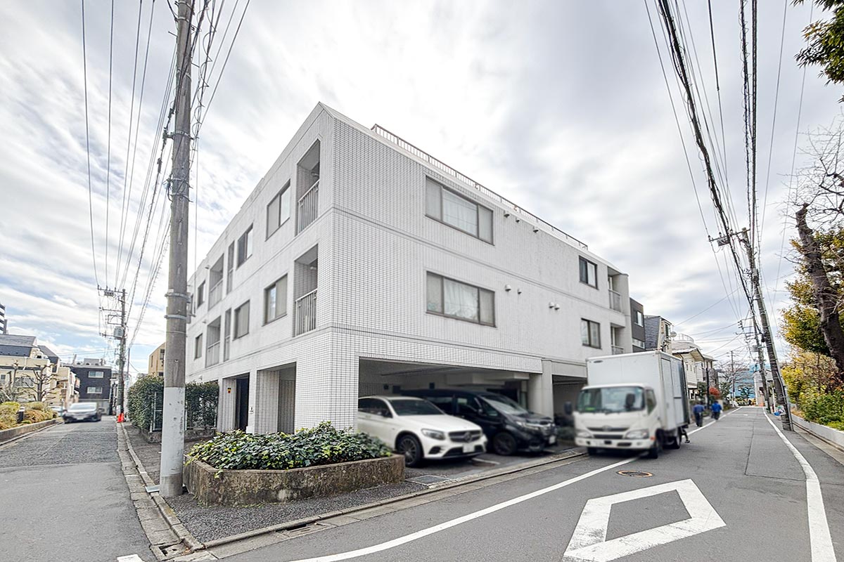 「中目黒駅」から山手通り沿いに徒歩10分、通りから一本入った角地に建つのが今回の物件です。