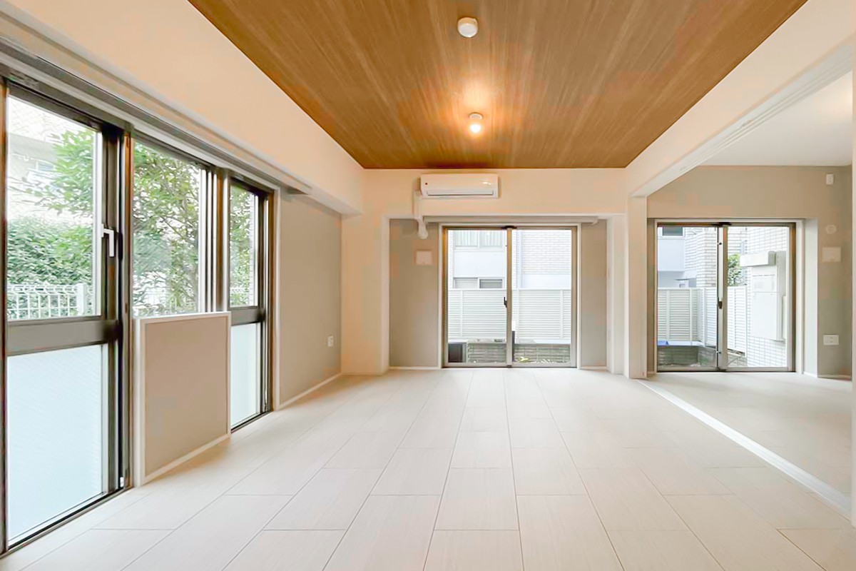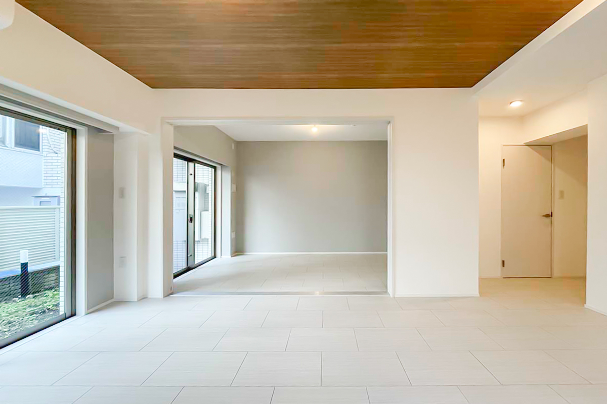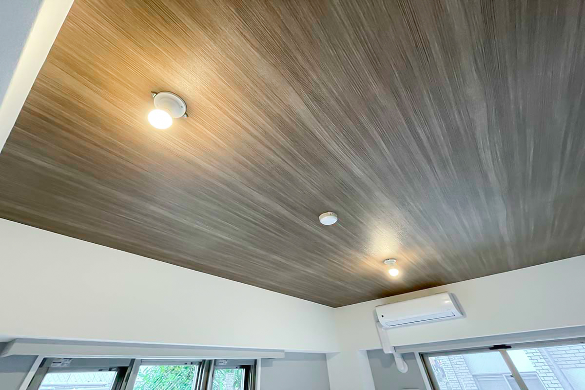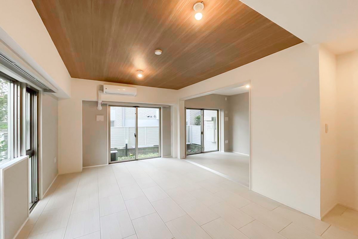 特徴的なのは、やはりリビングの木目調の天井でしょうか。