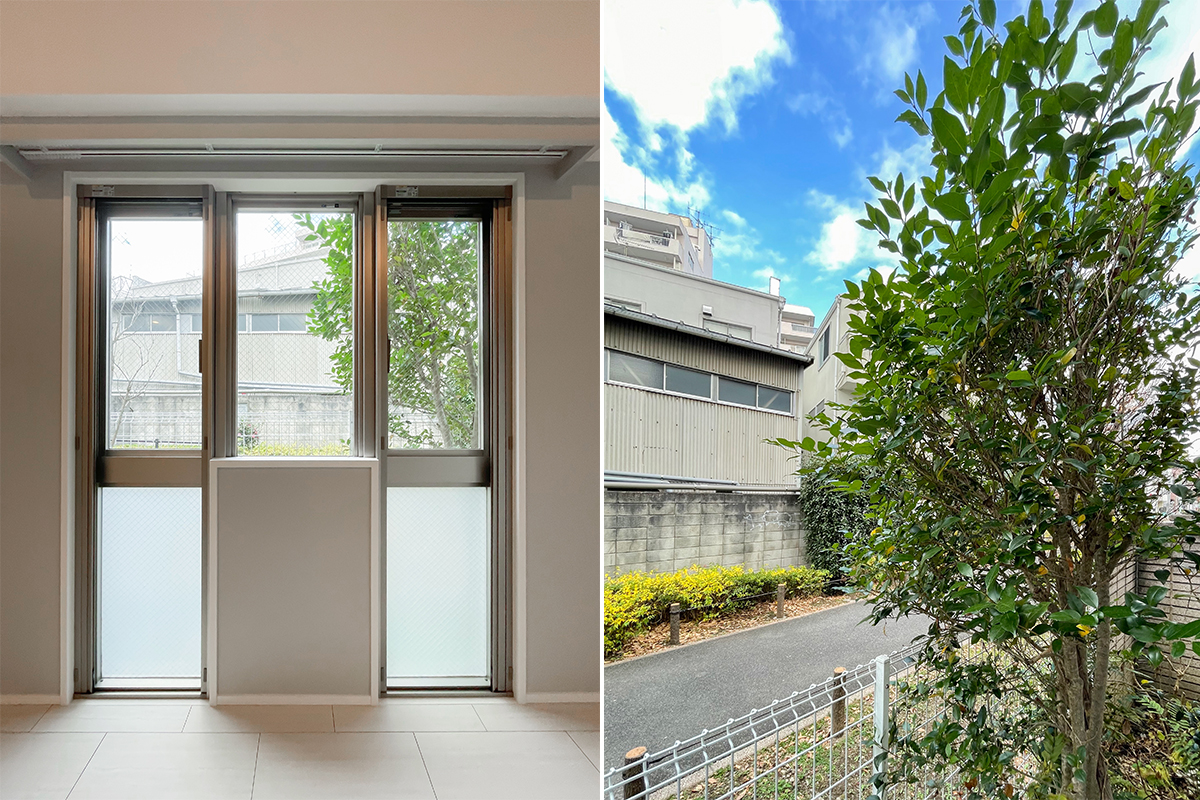 建物には囲まれていますが、それぞれの建物にとって裏側なのか、それほど視線が気になるような位置ではありませんでした。