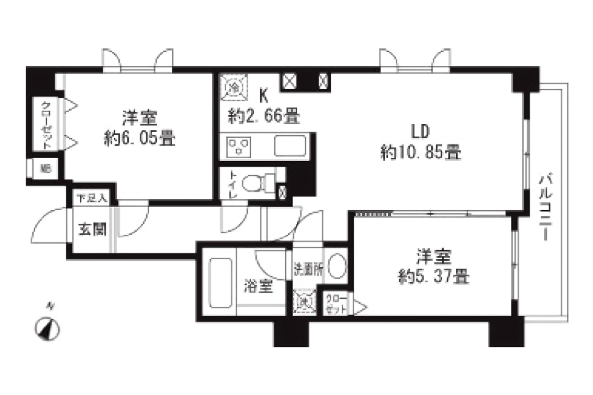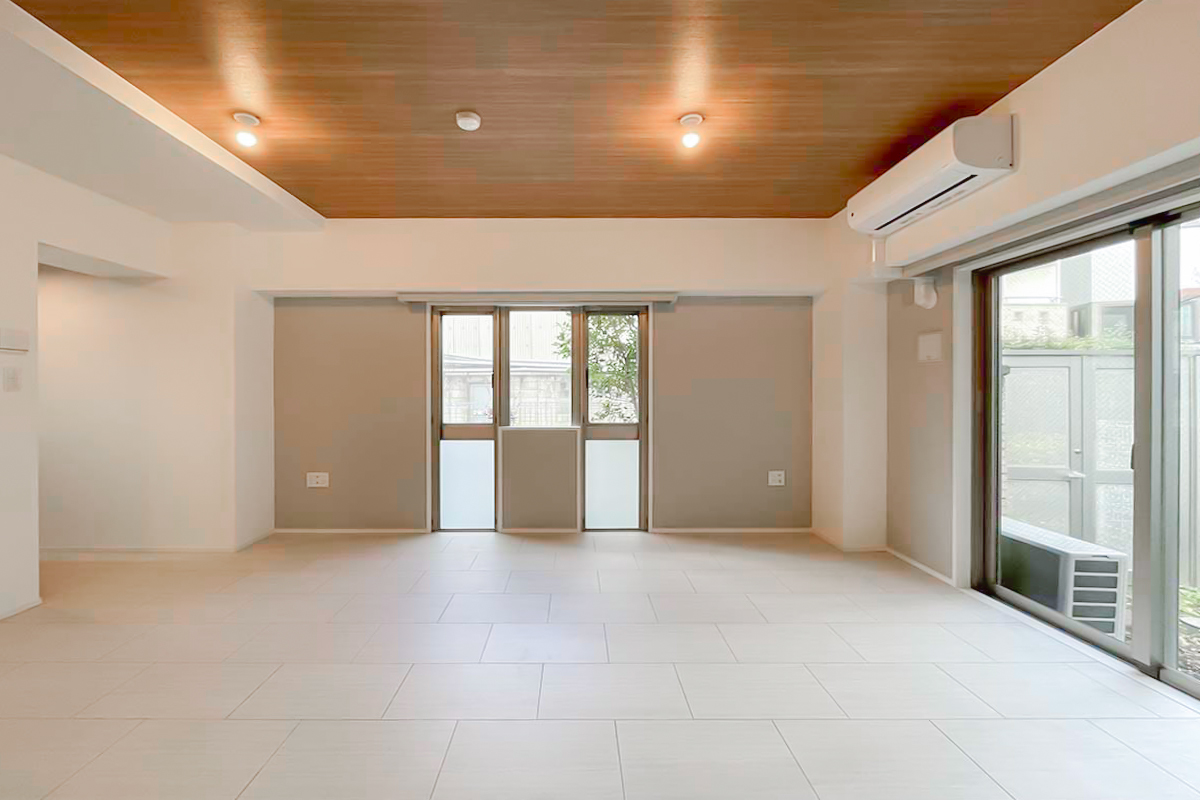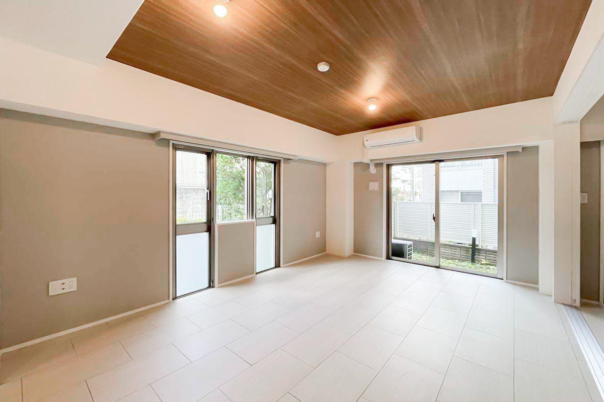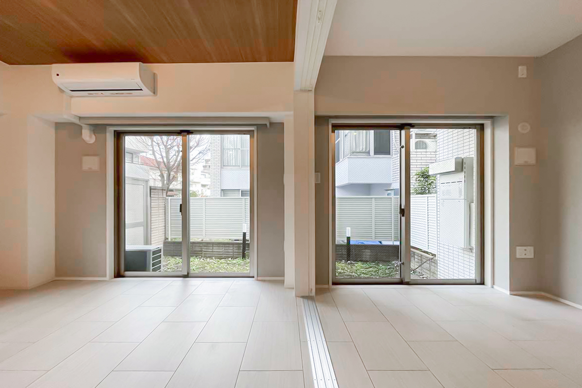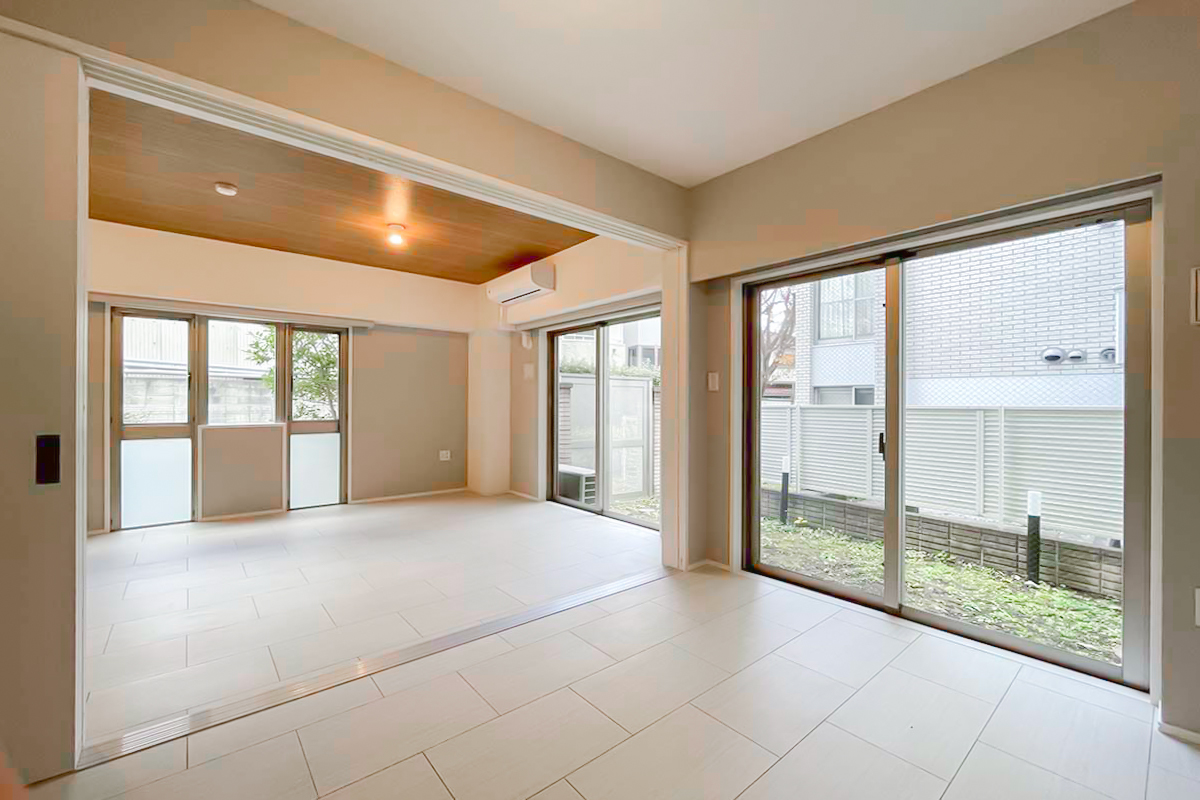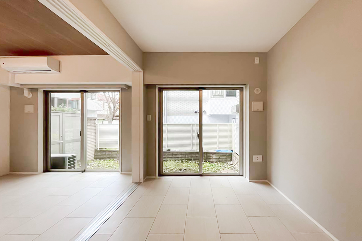 お部屋は1階、約55㎡の2LDKにコンパクトなお庭付きのお部屋。