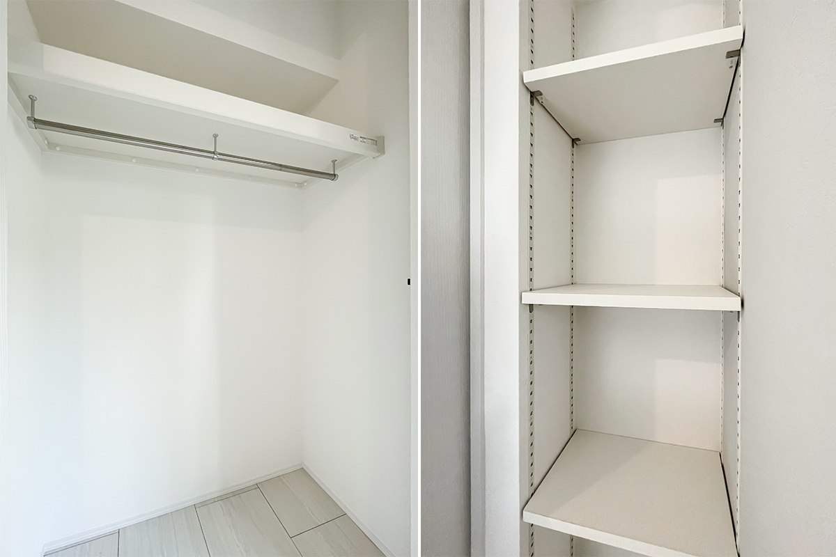 市販のハンガーラックや収納ケースをプラスして、少し工夫が必要になります。