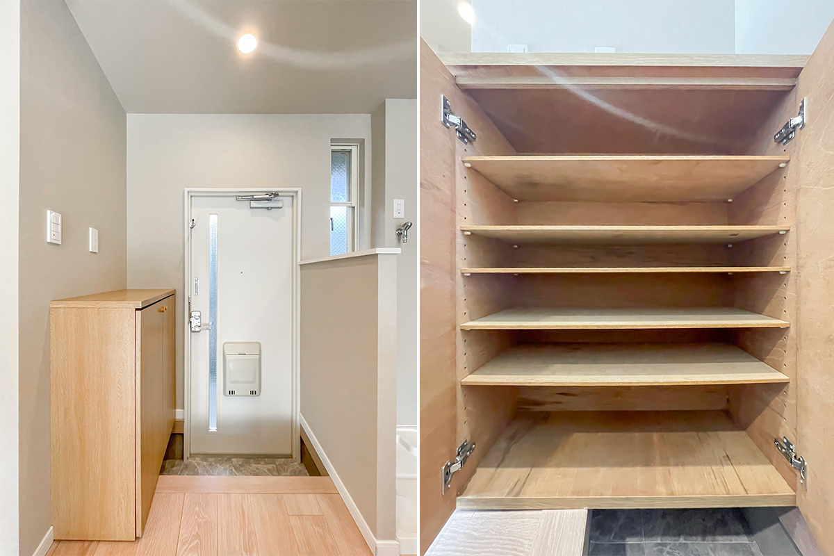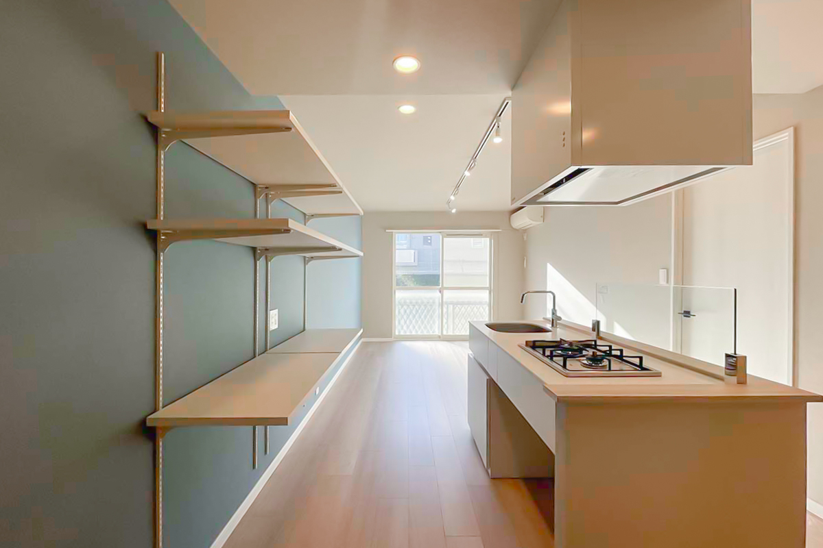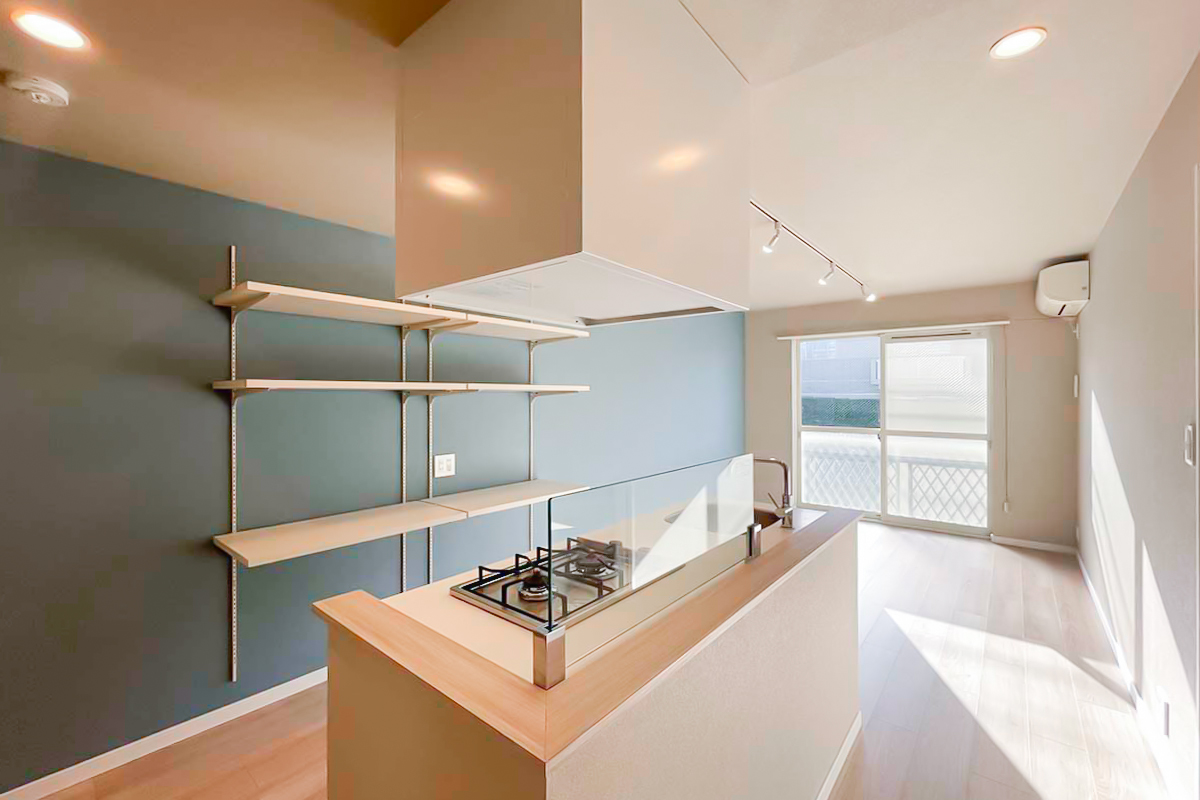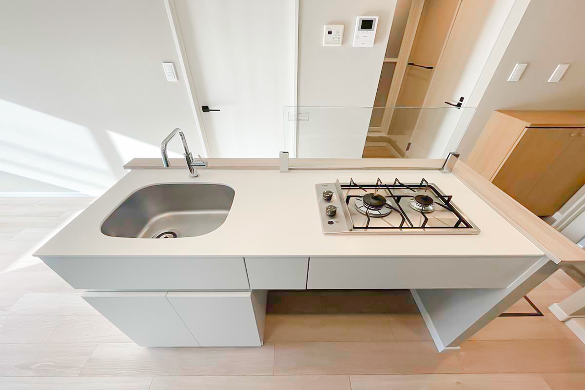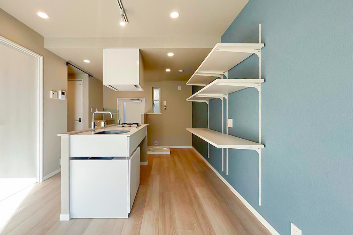 玄関入って目の前にキッチンが広がる形ですが、魅せられるおしゃれさです。