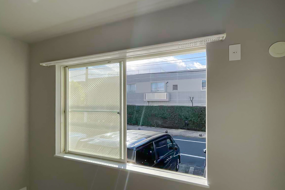 南向きで陽当たり良好です。(LDK・洋室どちらの窓にもシャッター付き)