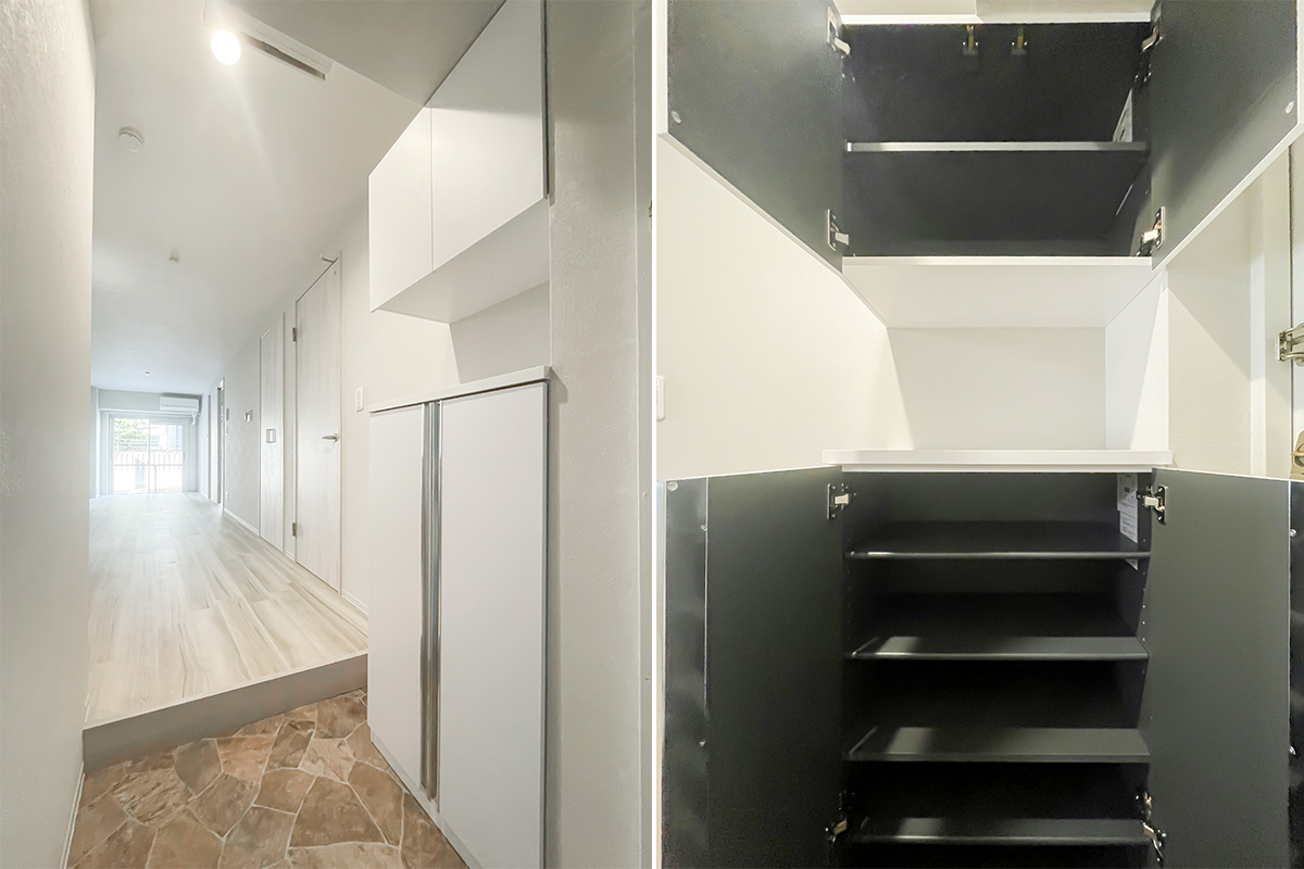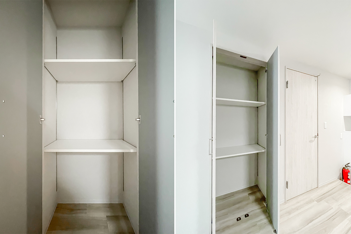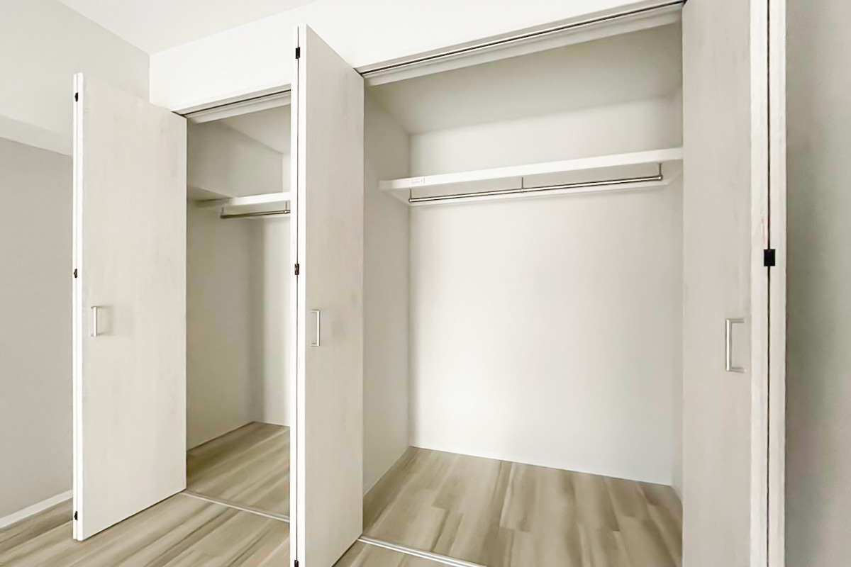 収納も壁一面に備わっています。