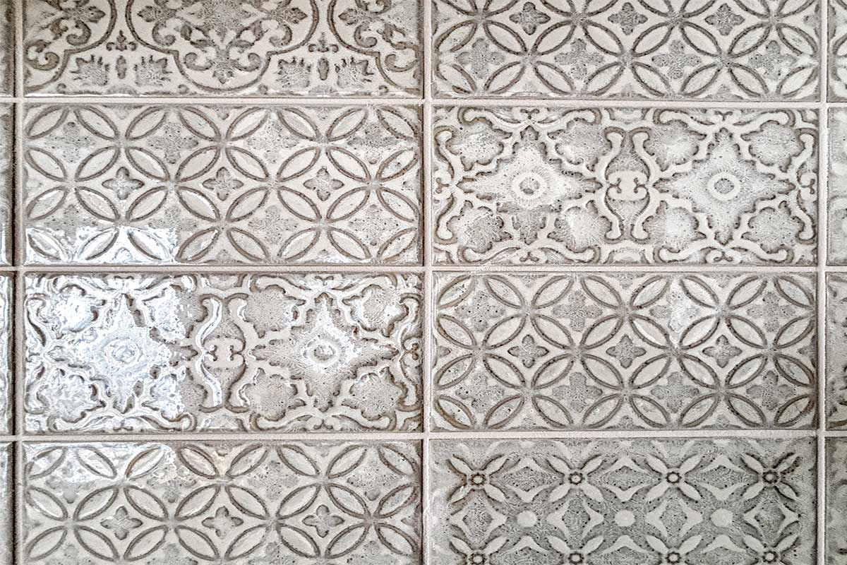 アンティークな表情のタイルが贅沢な、なんとも美しい佇まいのキッチンです。