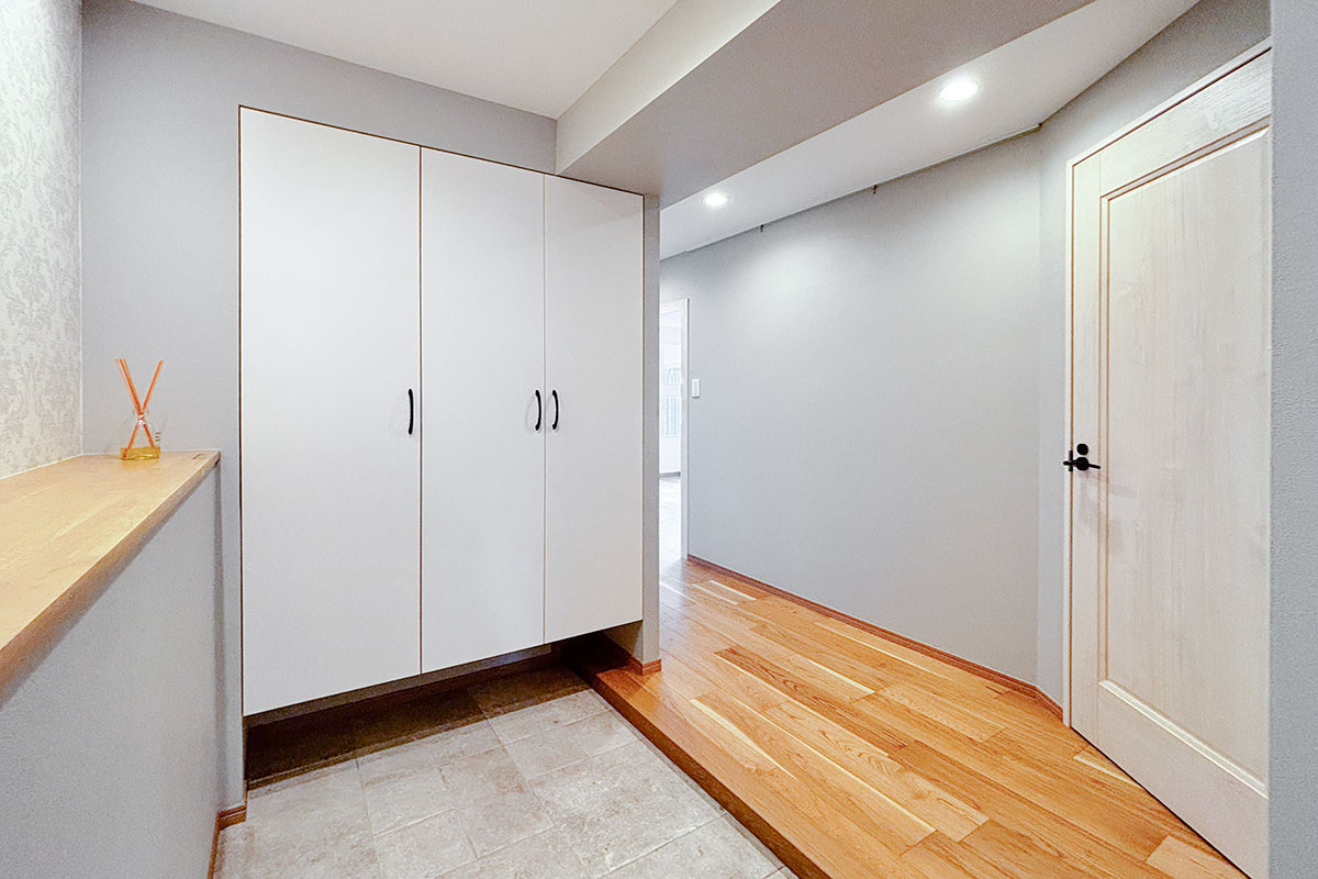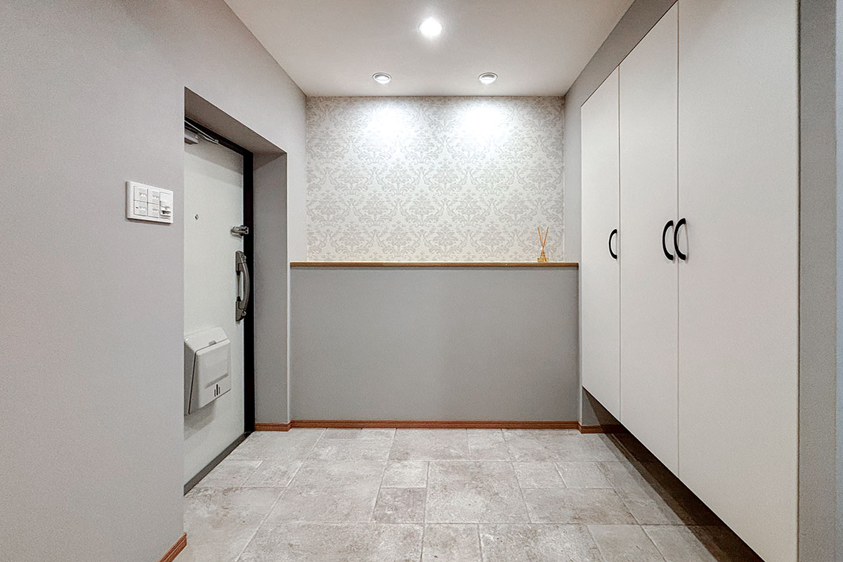 玄関は自転車保管やスーツケースの一時置きなどもできそうなゆったり感でした。